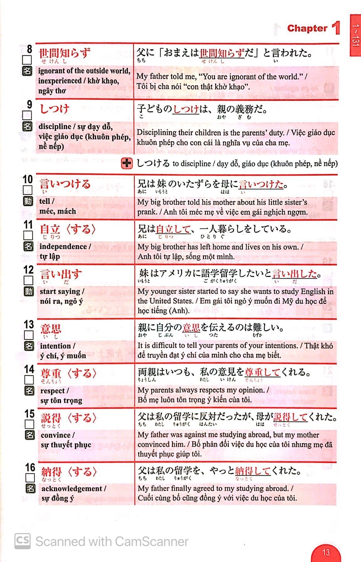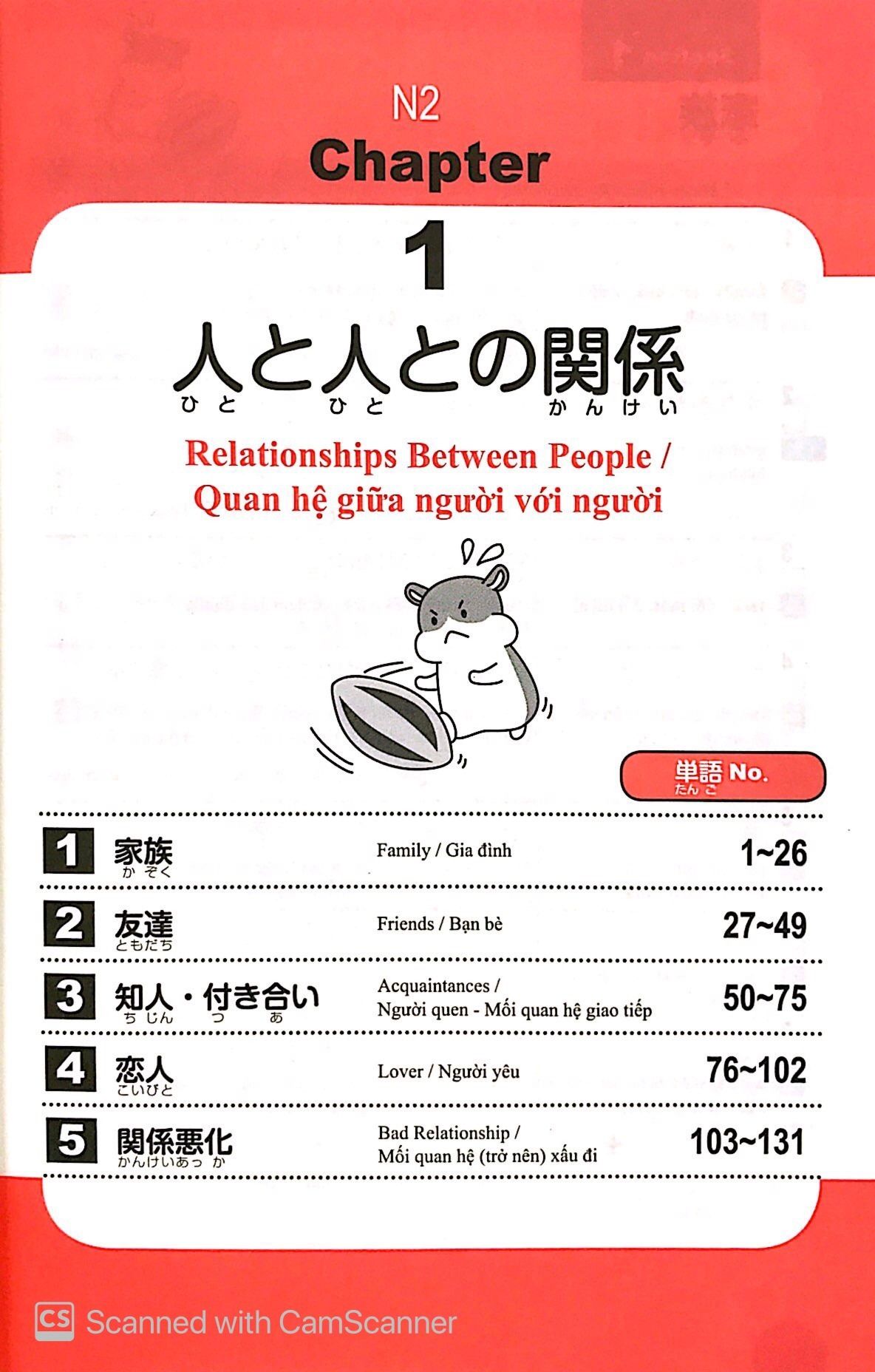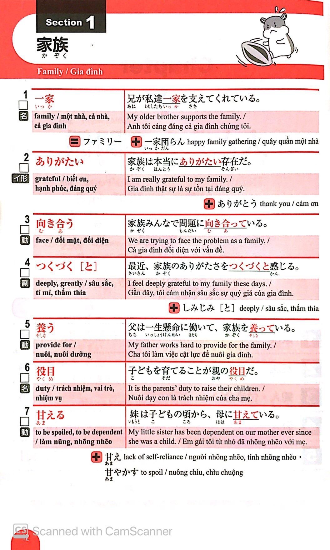 Bộ sách học từ vựng cấp độ N5 ~ N1 dành cho Kỳ thi Năng lực Nhật ngữ. Bộ sách gồm 5 cuốn: N1, N2, N3, N4, N5, tập hợp các từ vựng xuất hiện thường xuyên trong các kỳ thi Năng lực Nhật ngữ. Các từ vựng này được chia theo từng chủ đề, đi kèm các câu ví dụ. Đặc biệt bộ sách có kèm theo bản dịch Anh - Trung - Việt, rất tiện cho các bạn tự học ở nhà.