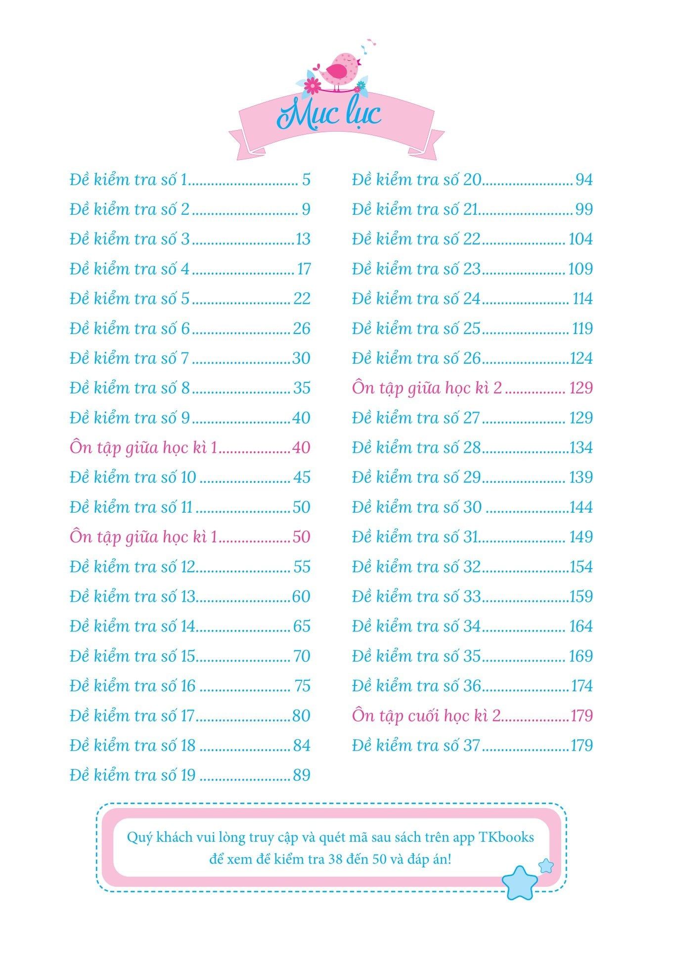 Nội dung cuốn sách gồm 37 đề kiểm tra và 4 đề Ôn tập giữa kỳ, cuối kỳ. Mỗi đề kiểm tra trong sách là một bước hành trình để các em vừa ôn luyện kiến thức đã học, vừa phát triển các kỹ năng cần thiết cho môn học này.