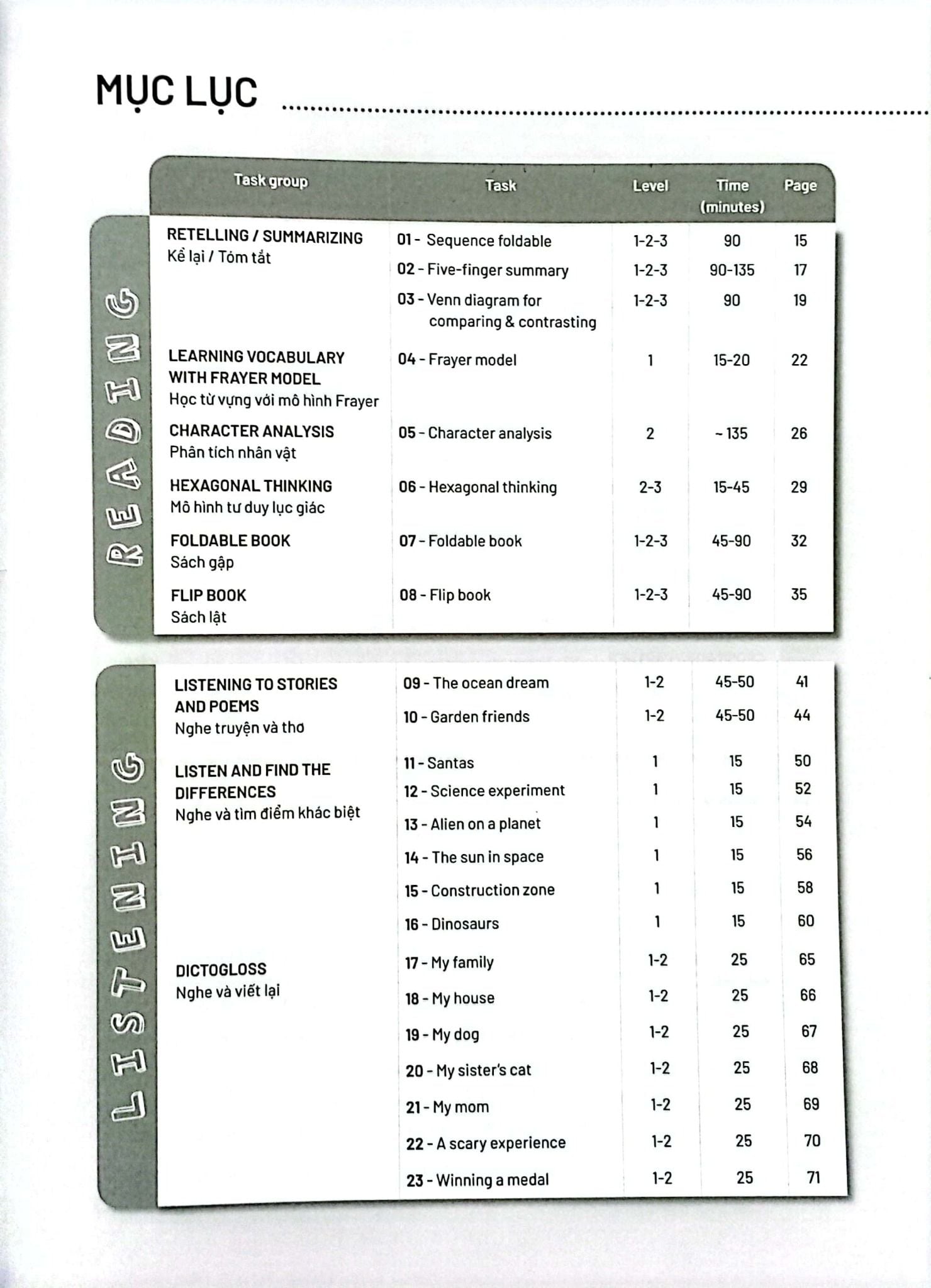 - Sử dụng file MP3 kèm sách cho các nhiệm vụ của hoạt động Nghe.