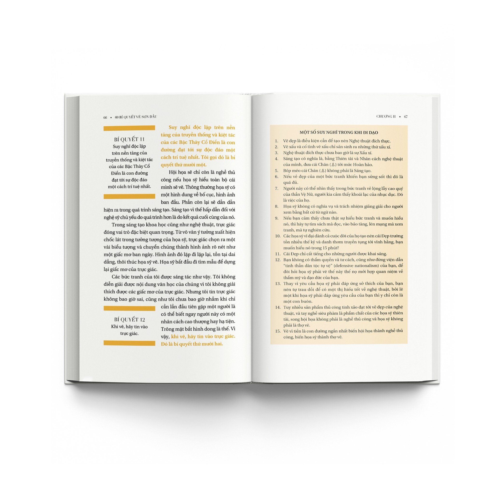 Để giúp độc giả có thể hiểu những điều được truyền đạt trong cuốn sách này và vận dụng chúng như những bí quyết của chính mình, tác giả không chỉ liệt kê, mà còn phân tích, trong chừng mực có thể, lý do và bản chất của chúng trên cơ sở khoa học. Đây là một trong vài phẩm chất tạo nên sự khác biệt trong hai cuốn sách đã xuất bản của họa sĩ Nguyễn Đình Đăng và tiếp tục được duy trì trong ấn phẩm này.