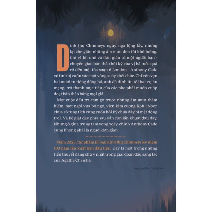 Năm 2025, tác phẩm “Bí mật dinh thự Chimneys” kỷ niệm 100 năm lần xuất bản đầu tiên. Đây là một trong những tiểu thuyết đáng chú ý nhất trong giai đoạn đầu sáng tác của Agatha Christie.