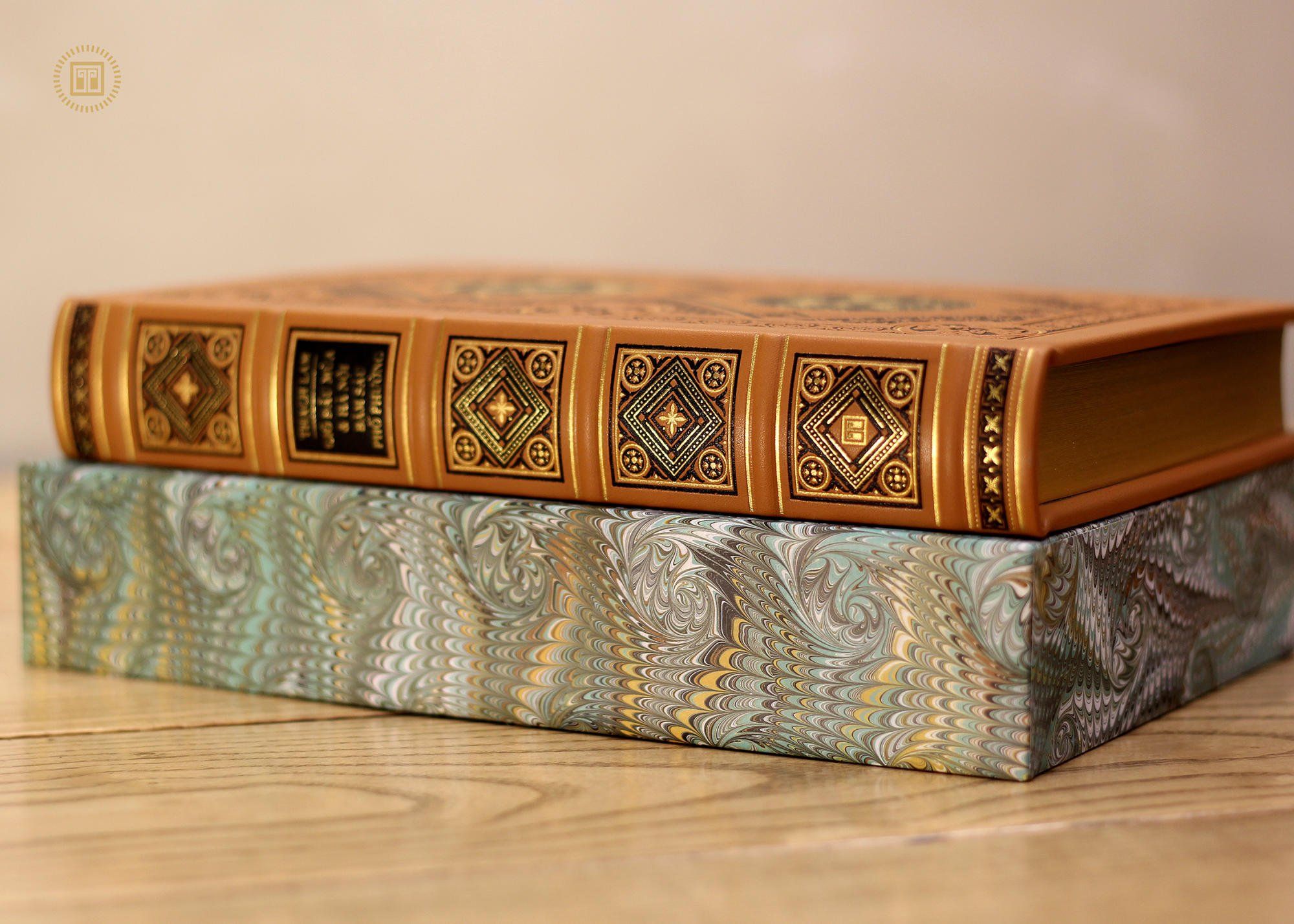 5. Sách có hộp đựng bằng carton, hoa văn trang trí in thủy ấn.
