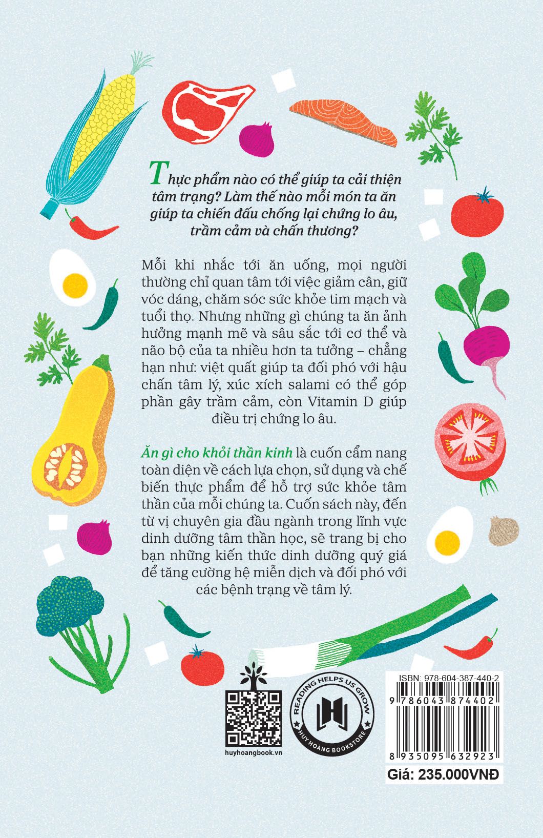 "Thực phẩm nào có thể giúp ta cải thiện tâm trạng? Làm thế nào để mỗi món ta ăn giúp ta chiến đấu chống lại chứng lo âu, trầm cảm và chấn thương?"