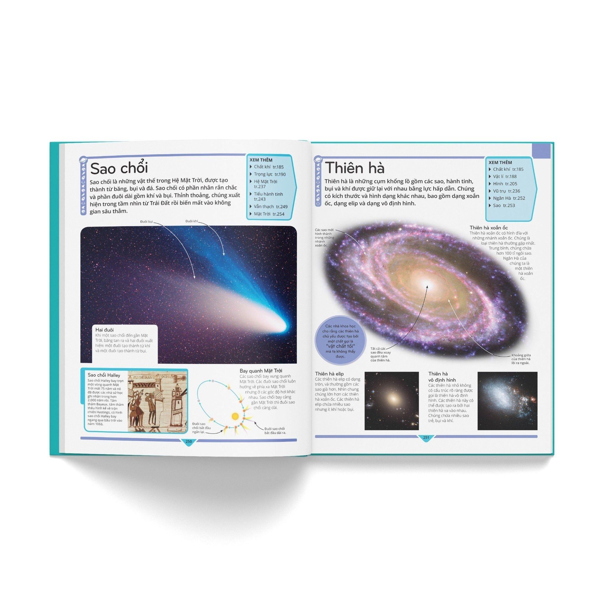 Luôn nằm trong top sách bán chạy và được cập nhật kiến thức mới nhất, Bách khoa thư trẻ em – Cuốn sách lí giải vạn vật có lối trình bày mạch lạc, khoa học, là cuốn sách thiết yếu cho mọi tủ sách thiếu nhi. Mở đầu, phần “Hướng dẫn sử dụng” sẽ khái quát cuốn sách cũng như giúp các bạn đọc nhỏ tuổi thuận tiện trong việc đọc và tra cứu. Tiếp đó, nội dung được chia thành chín lĩnh vực gồm nhiều chủ đề, mỗi chủ đề gói gọn trong một trang đơn. Chẳng hạn, lĩnh vực Công nghệ nói về cách hoạt động của máy bay, robot...; lĩnh vực Vũ trụ giải thích hố đen là gì, ngôi sao hình thành và chết đi ra sao… Xen kẽ là các trang đôi diễn giải một chủ đề theo tư duy liên kết giữa các lĩnh vực, như “Câu chuyện về mật mã” thuật lại lịch sử của mật mã (ra đời, phát triển…) và cách sử dụng mật mã... Mỗi trang cũng có ô “Xem thêm” liệt kê các chủ đề liên quan với chủ đề đang đề cập. Cuối sách là phụ lục gồm danh sách các nhà khoa học, cây sự sống, bản đồ thế giới… Đặc biệt, phiên bản tiếng Việt này còn có danh sách các quân chủ và triều đại Việt Nam. Sau cùng là phần “Từ vựng” giải nghĩa từ khó và “Chỉ mục” để tra cứu các chủ đề.