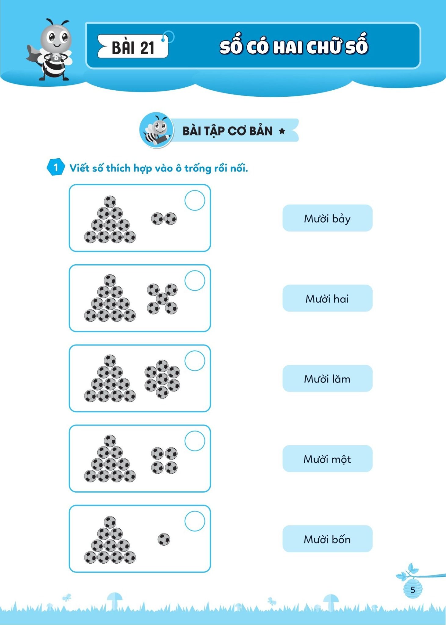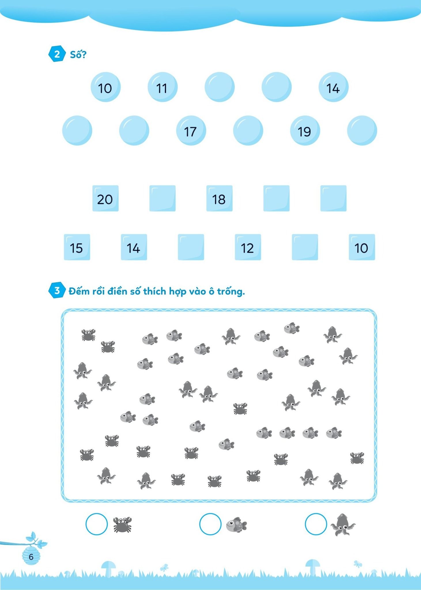 Các bài tập trong phần này được thiết kế sinh động, đầy cảm hứng với rất nhiều các hoạt động nối, tô màu, điền số,... giúp khơi gợi hứng thú học và làm bài tập của các em, đồng thời giúp các em củng cố và nắm chắc các kiến thức đã học.