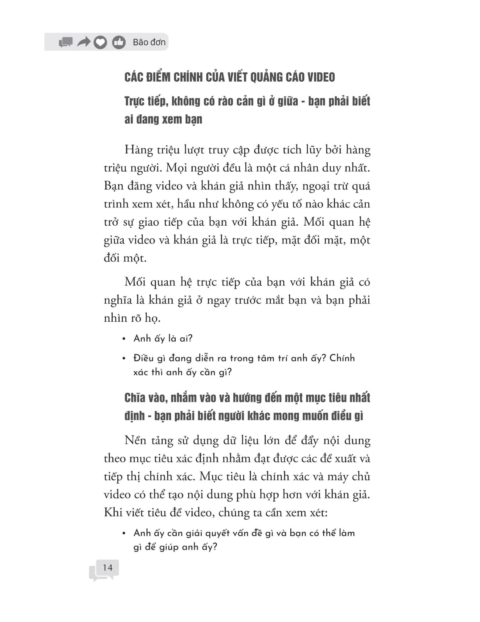 Đối với những người viết quảng cáo muốn củng cố các kỹ năng cơ bản của mình, cuốn sách này chứa các kiến thức và phương pháp mài giũa cần phải học. Cuốn sách này sử dụng thuật ngữ đơn giản và dễ hiểu nhất cùng các trường hợp cụ thể rất phong phú để vạch ra một câu hỏi thiết yếu dễ bị bỏ qua: Người dùng cần giá trị hoặc dịch vụ nào?