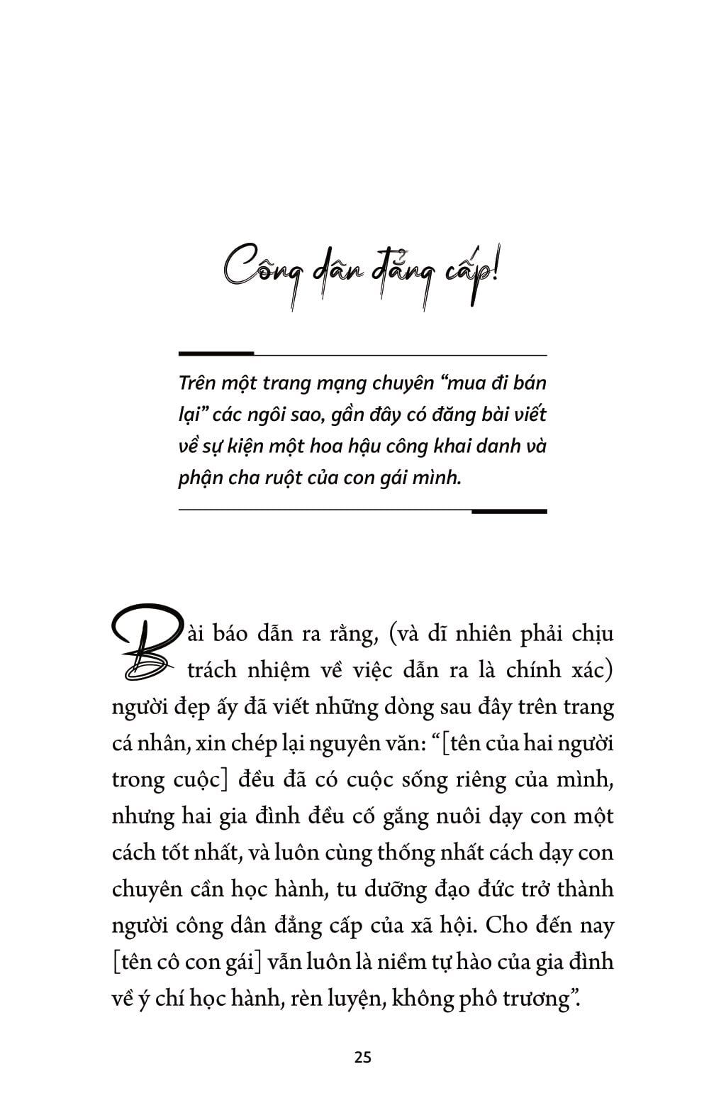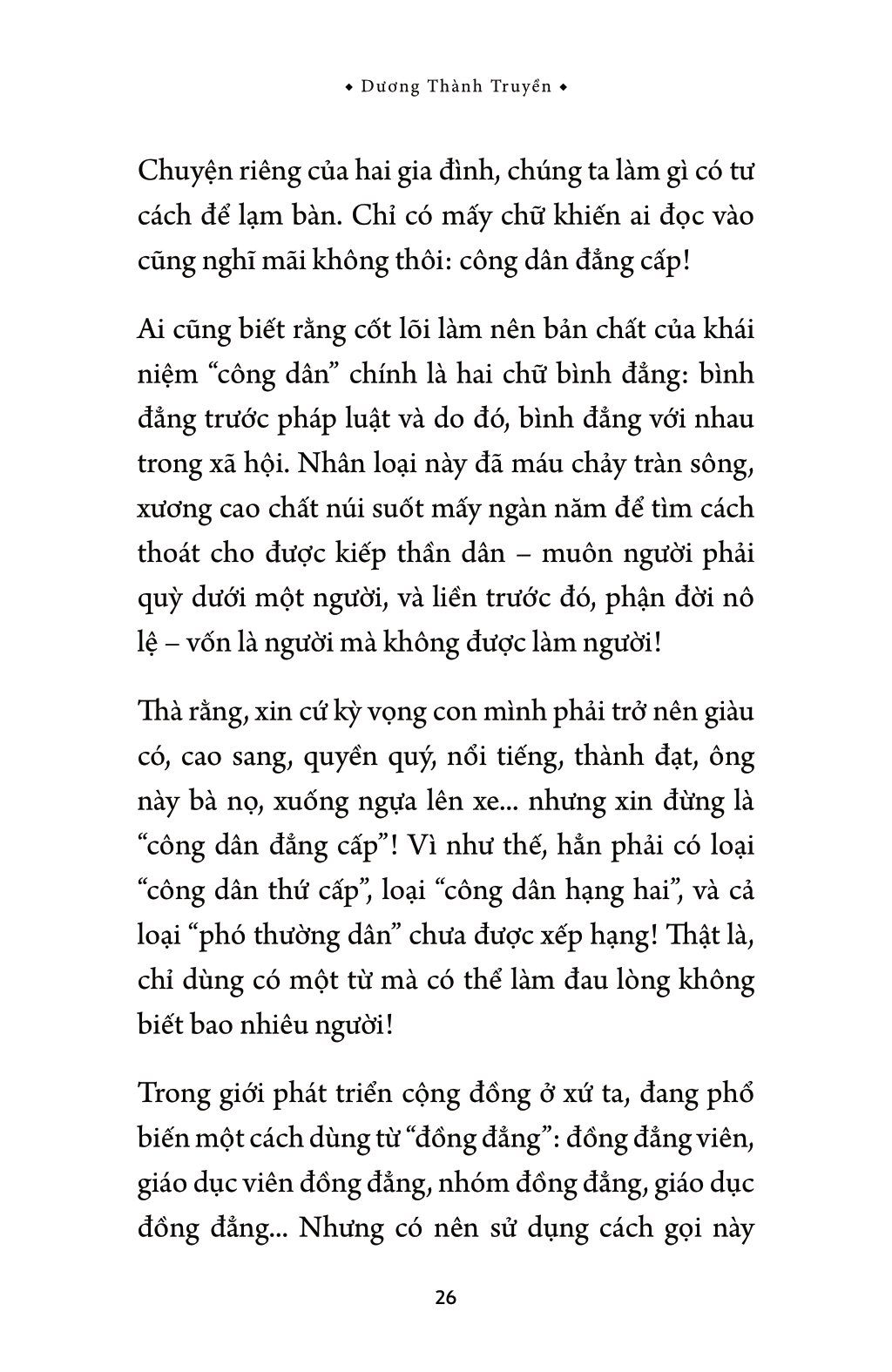 Và cả những trăn trở day dứt rằng: Thà rằng, xin cứ kỳ vọng con mình phải trở nên giàu có, cao sang, quyền quý, nổi tiếng, thành đạt, ông này bà nọ, xuống ngựa lên xe… nhưng đừng gọi là “công dân đẳng cấp”. Vì thế hẳn có loại “công dân thứ cấp”, và cả loại “phó thường dân” chưa xếp hạng. Thật là, chỉ dùng có mấy chữ mà làm đau lòng không biết bao nhiêu người.