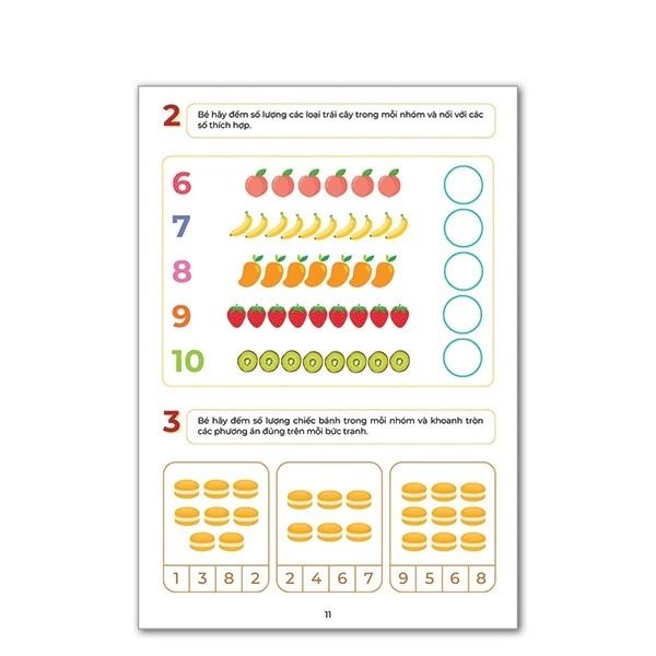 Khả năng đếm và nhận diện số lượng thông qua hình ảnh hoa quả, đồ vật, con vật.