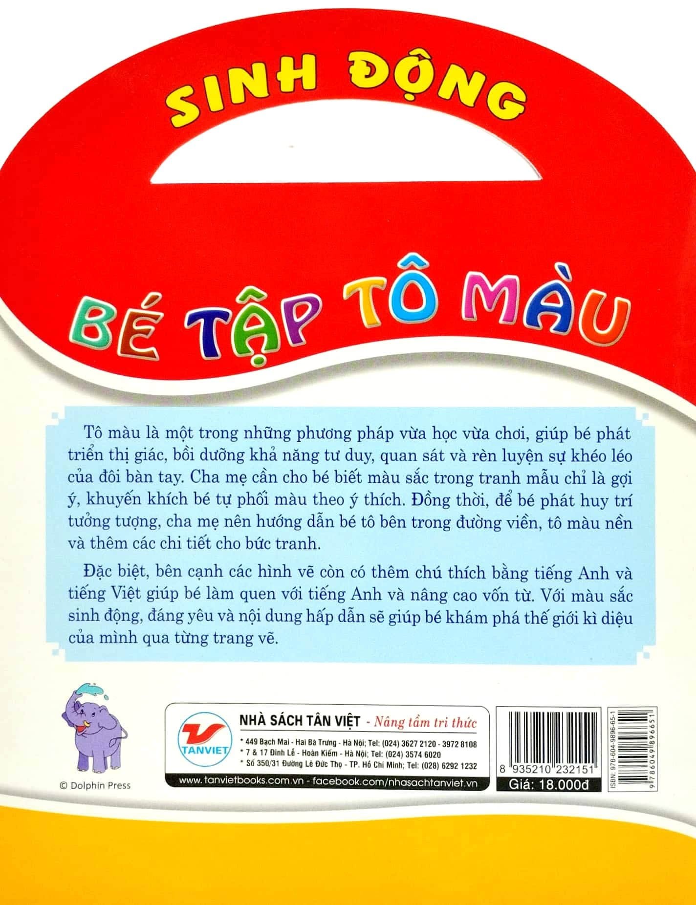 Đặc biệt, bên cạnh các hình vẽ còn có thêm chú thích bằng tiếng Anh và tiếng Việt giúp bé làm quen với tiếng Anh và nâng cao vốn từ. Với màu sắc sinh động, đáng yêu và nội dung hấp dẫn sẽ giúp bé khám phá thế giới kì diệu của mình qua từng trang vẽ.