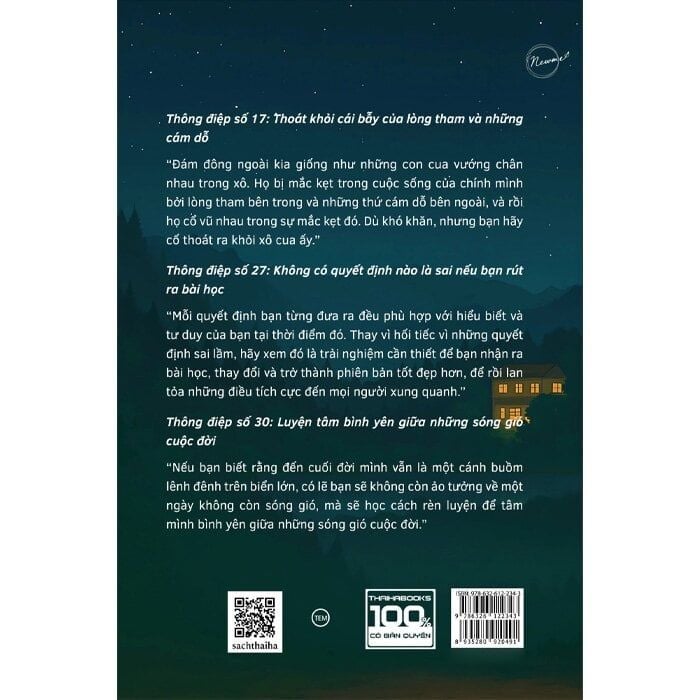 Sách gồm 30 câu chuyện – mỗi câu chuyện là một thông điệp phát triển bản thân xoay quanh ba trục lớn: chữa lành – phát triển – mục đích sống. Người đọc sẽ đồng hành cùng bốn nhân vật không phải như “người dạy”, mà như những người bạn đã từng sống, từng hoang mang và đang học cách tử tế với chính mình. Nhờ đó, bạn có thể bắt gặp một phần đời của mình hoặc của ai đó thân quen giữa những trang sách này.