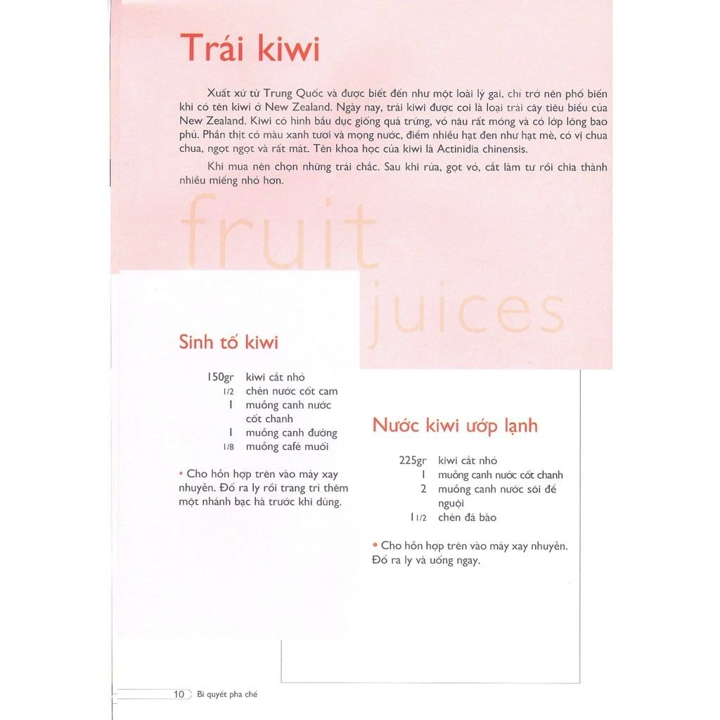 Quyển sách cũng phân tích kỹ lưỡng những giá trị dinh dưỡng mà từng loại trái cây cung cấp để chúng ta có thể chọn lựa loại nào phù hợp nhất với nhu cầu cơ thể hay nhu cầu dinh dưỡng hàng ngày. Các đơn vị đo lường dùng trong quyển sách đã được quốc tế chuẩn hóa. Nhưng để thuận tiện cho bạn đọc, quyển sách có giới thiệu thêm một bảng các đơn vị tương đương, quen thuộc với chúng ta so với đơn vị đo lường quốc tế. Hy vọng quyển sách sẽ giúp chúng ta có được những phút giây thư giãn khi cùng chế biến, trang trí và thưởng thức hương vị của từng loại thức uống bên cạnh gia đình, bạn bè hay những người thân yêu.