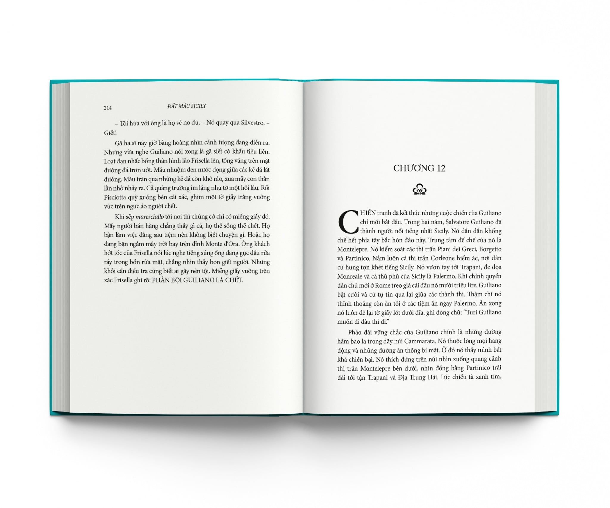 Đất máu Sicily đưa độc giả đến quê hương của mafia những năm 1940, với nhân vật chính là thủ lĩnh băng cướp Turi Guiliano – nhân vật được khắc họa đầy lãng mạn như một chiến binh, một người tình, và trên hết là một người Sicily từ trong máu thịt.