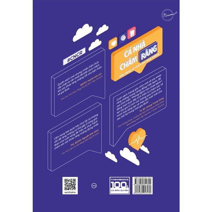 Quyển sách nhỏ bạn đang cầm trên tay là một sản phẩm được ra miệng cho cộng đồng người Việt trên tinh thần “Phòng bệnh hơn chữa bệnh”. Hiểu biết và thực hành chăm sóc răng miệng đúng là cách chúng ta tự chăm sóc và yêu thương bản thân, trao gửi thông tin hữu ích đến người thân, bạn bè để lan tỏa những giá trị tốt đẹp, góp phần tạo nên một cuộc sống tràn đầy niềm vui và sự tự tin. Đó cũng chính là thông điệp của cuốn sách này.