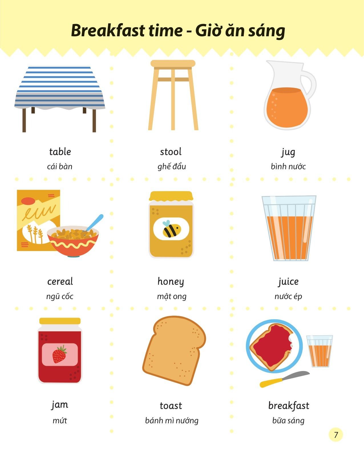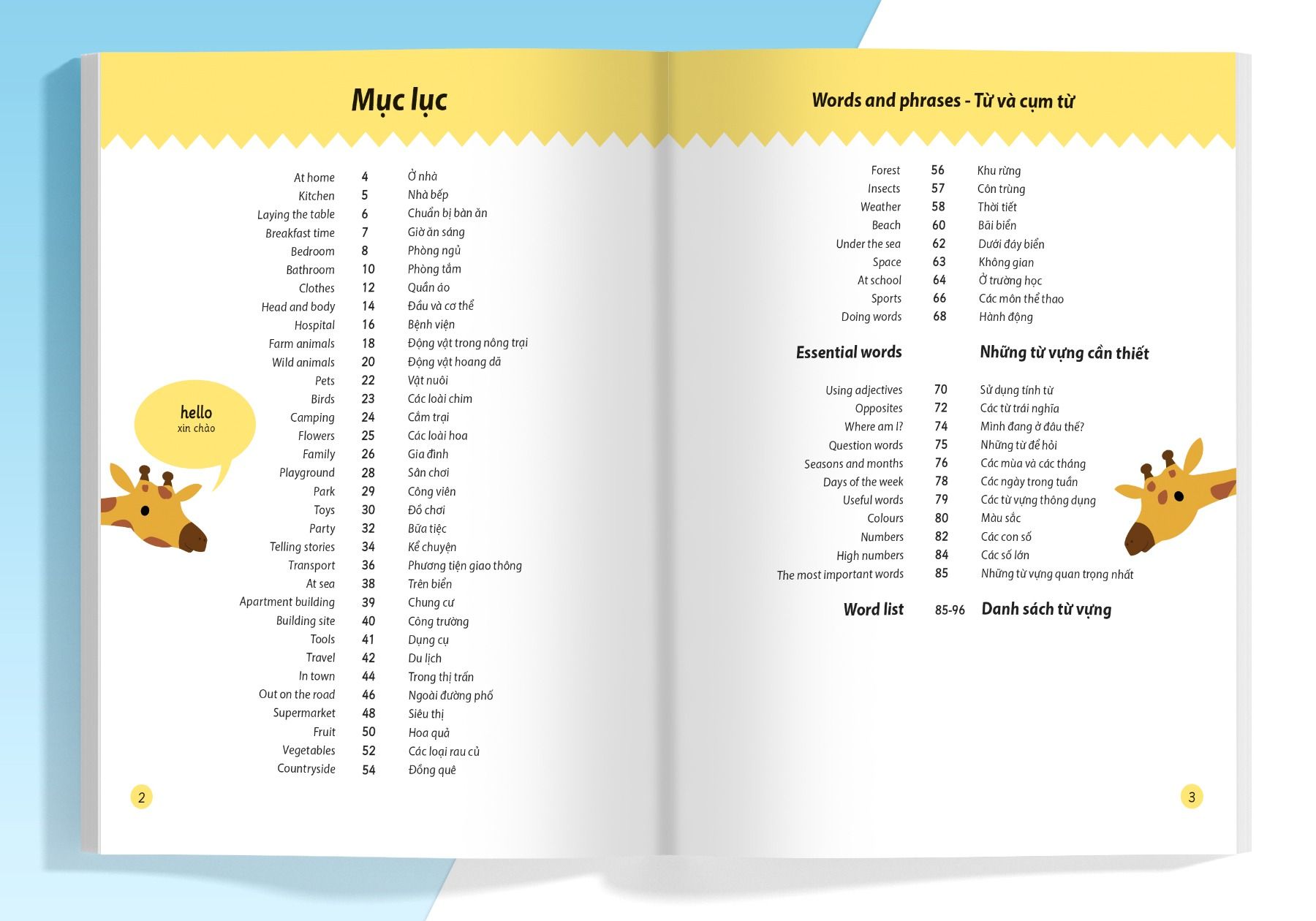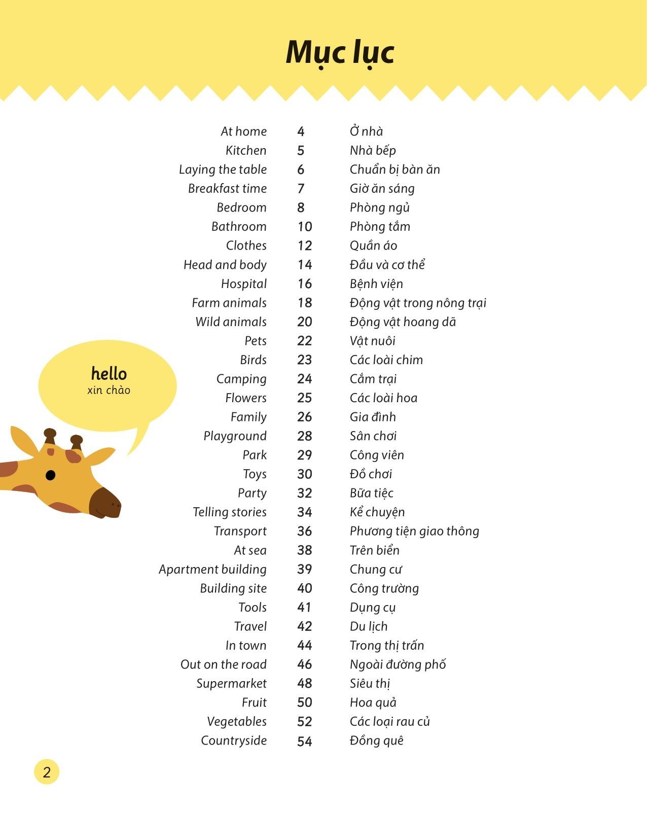 - Từ vựng trong sách bao gồm các chủ đề quen thuộc trong cuộc sống như: ở nhà, nhà bếp, bệnh viện, vật nuôi, siêu thị, hoa quả,...