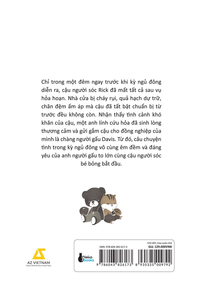 Chỉ trong một đêm ngay trước khi kỳ ngủ đông diễn ra, cậu người sóc Rick đã mất tất cả sau vụ hỏa hoạn. Nhà cửa bị cháy rụi, quả hạch dự trữ, chăn đệm ấm áp mà cậu đã tất bật chuẩn bị từ trước đều không còn. Nhận thấy tình cảnh khó khăn của cậu, một anh lính cứu hỏa đã sinh lòng thương cảm và gửi gắm cậu cho đồng nghiệp của mình là chàng người gấu Davis. Từ đó, câu chuyện tình trong kỳ ngủ đông vô cùng êm đềm và đáng yêu của anh người gấu to lớn cùng cậu người sóc bé bỏng bắt đầu.