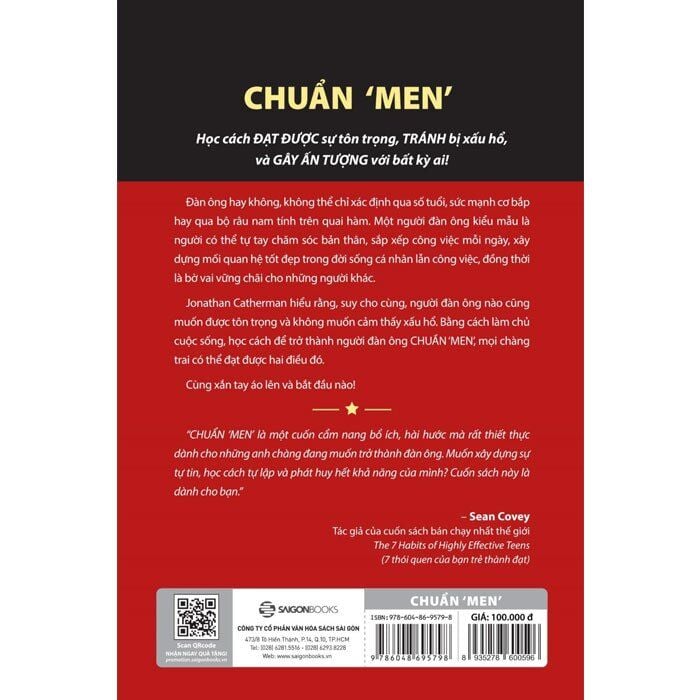 Tác giả Jonathan Catherman hiểu rằng, suy cho cùng, người đàn ông nào cũng muốn được tôn trọng và không muốn cảm thấy xấu hổ. Bằng cách làm chủ cuộc sống, học cách để trở thành người đàn ông Chuẩn 'Men', mọi chàng trai đều có thể đạt được hai điều đó.