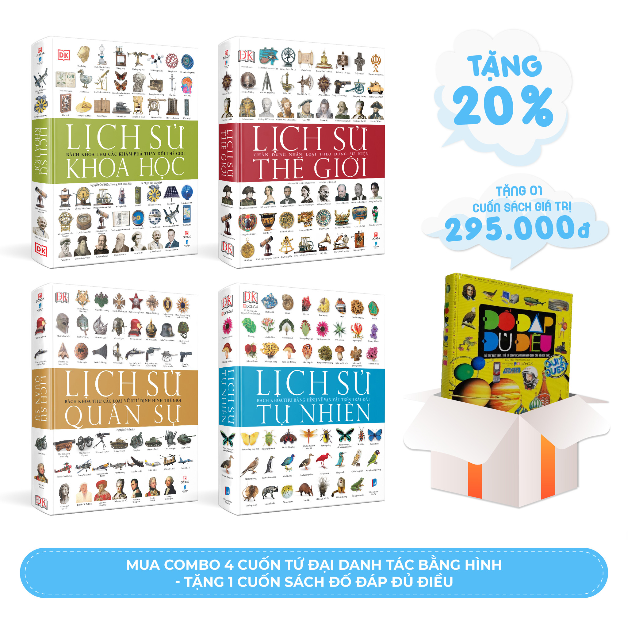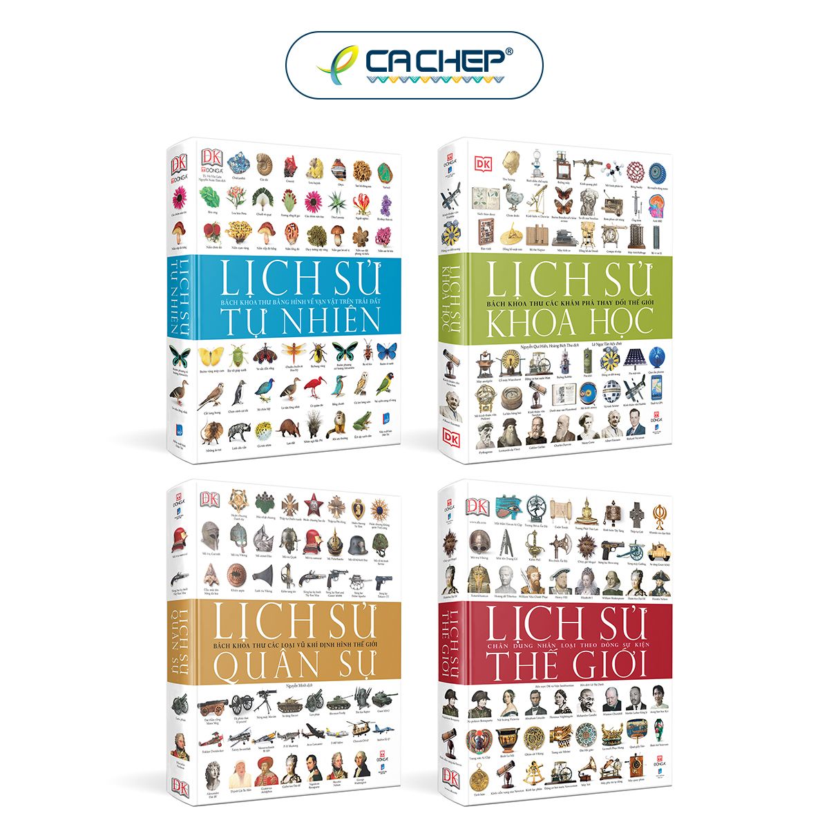 Tứ Đại Danh Tác Bằng Hình là bộ sách bách khoa thư mà Đông A đã dày công thực hiện và chuyển ngữ từ nhà xuất bản hàng đầu Anh Quốc - DK (Dorling Kindersley). Bộ sách 4 cuốn bao gồm: Lịch sử Tự nhiên, Lịch sử Thế giới, Lịch sử Quân sự và Lịch sử Khoa học.