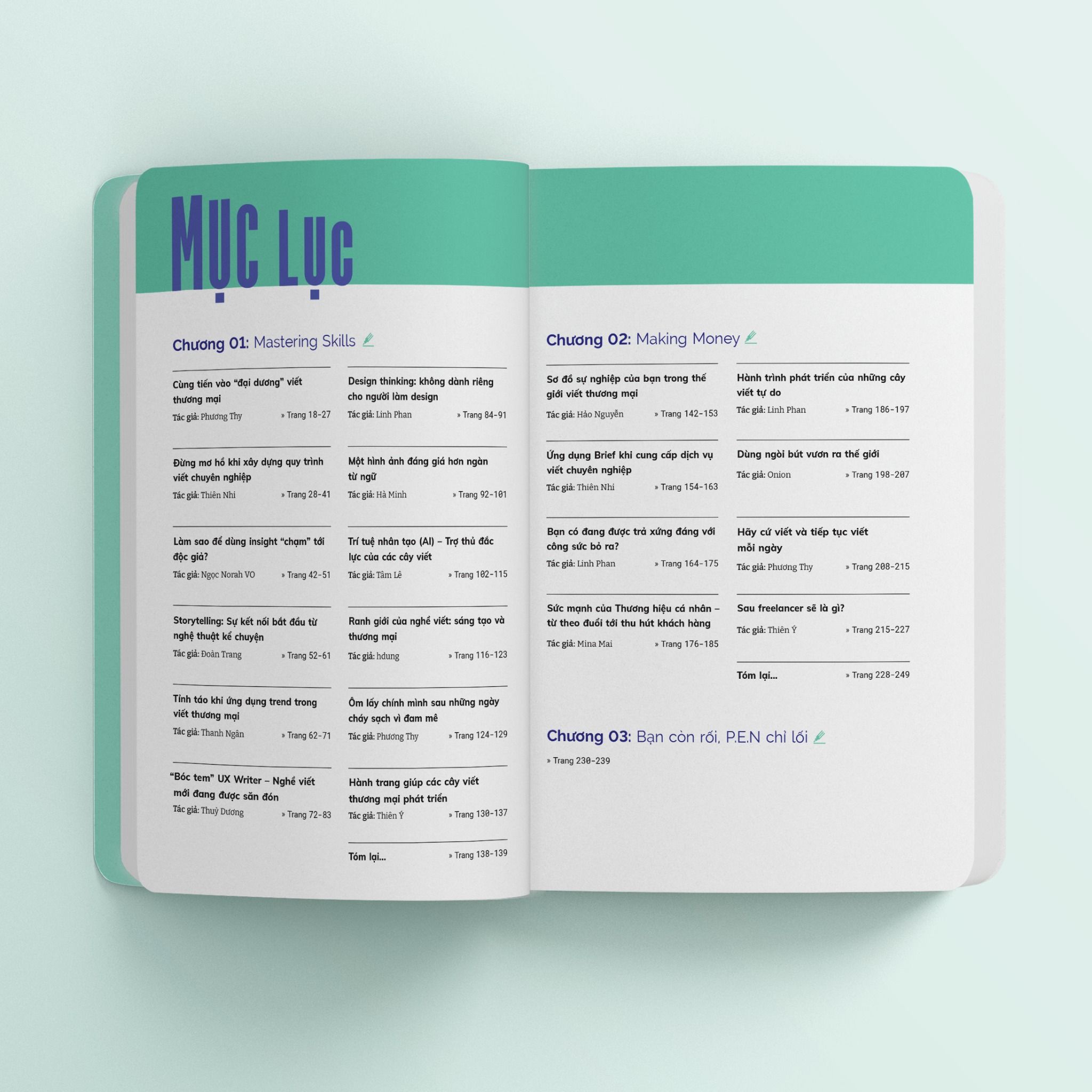 Chương hai - Making Money: Bạn sẽ được thăm quan hành trình trở thành một cây viết thương mại thành công từ việc xây dựng dịch vụ, định giá, thu hút khách hàng tiềm năng,... từ đó giúp thu nhập trở nên ổn định để có thể theo đuổi lâu dài công việc viết thương mại.