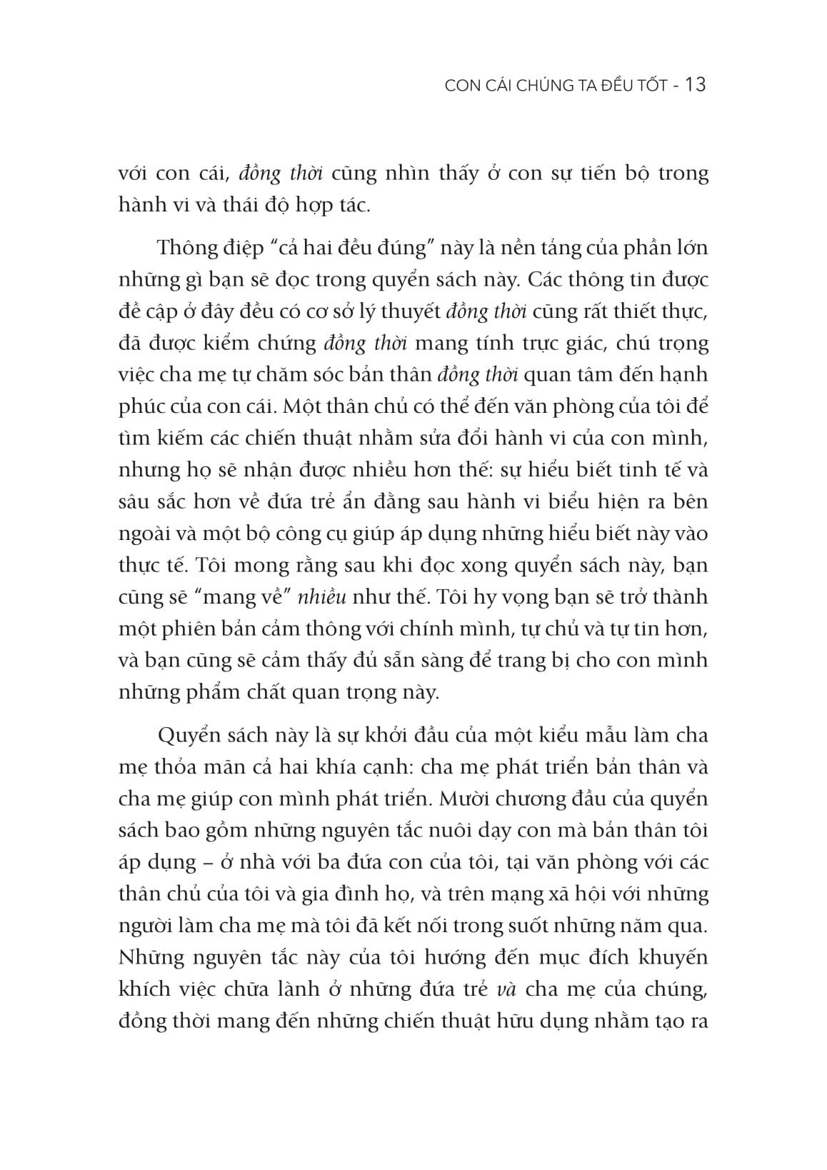 Với những nguyên tắc và các chỉ dẫn cách ứng xử trong những tình huống cụ thể – từ anh chị em gây gổ với nhau, ăn vạ, nói dối đến lo âu, thiếu tự tin và nhút nhát, Con cái chúng ta đều tốt là một cẩm nang dành cho một thế hệ cha mẹ đang tìm kiếm một cách thức nuôi dạy con mới trong khi đồng thời vẫn giúp các con xây dựng khả năng tự điều tiết, sự tự tin và sức bật tinh thần.