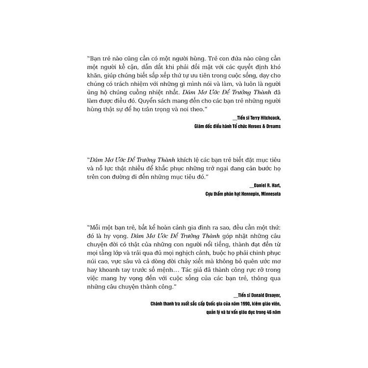 Quyển sách này dành tặng cho các bạn trẻ trên khắp thế giới, nhằm khuyến khích họ Dám Mơ Ước, theo đuổi nó đến cùng và đừng bao giờ bỏ cuộc.