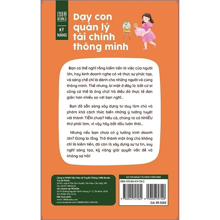Cuốn sách “Dạy con quản lý tài chính thông minh” giúp bạn tiếp cận việc quản lý tài chính giống doanh nhân, dạy con cách sử dụng tiền như 1 ông chủ nhỏ. Khi có tư duy làm chủ, con bạn có thể sử dụng nó trong mọi lĩnh vực trong cuộc sống, cho dù đó là ở trường học, trong thể thao hay để tìm ra những cách tuyệt vời cho thế giới trở nên tốt đẹp hơn.