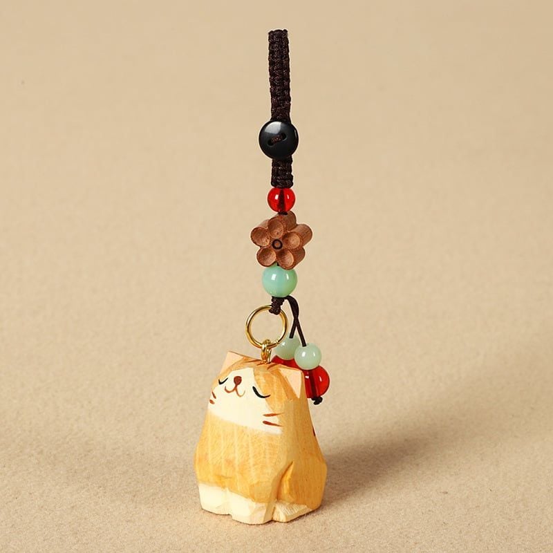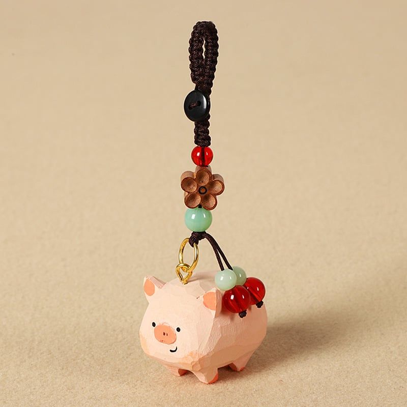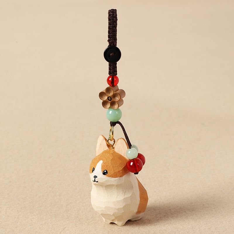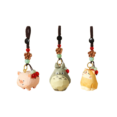 Dây trang trí, móc khóa tạo hình đáng yêu, điêu khắc gỗ thủ công