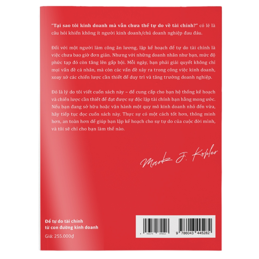 “Để tự do tài chính từ con đường kinh doanh" là cuốn sách hướng dẫn xây dựng kế hoạch tài chính cá nhân vững chắc dành riêng cho người kinh doanh, các chủ doanh nghiệp, chủ cửa hàng vừa và nhỏ. Bạn sẽ tìm được phương pháp thoát khỏi sự căng thẳng khi vừa phải đối mặt với vấn đề tài chính cá nhân, vừa phải duy trì và phát triển công việc kinh doanh. Những chỉ dẫn trong cuốn sách sẽ đem đến sự tự do, độc lập và linh hoạt về tài chính, từ đó bạn có thể lựa chọn nghỉ hưu ở bất kỳ thời điểm nào hay làm bất kỳ điều gì bạn mong muốn.