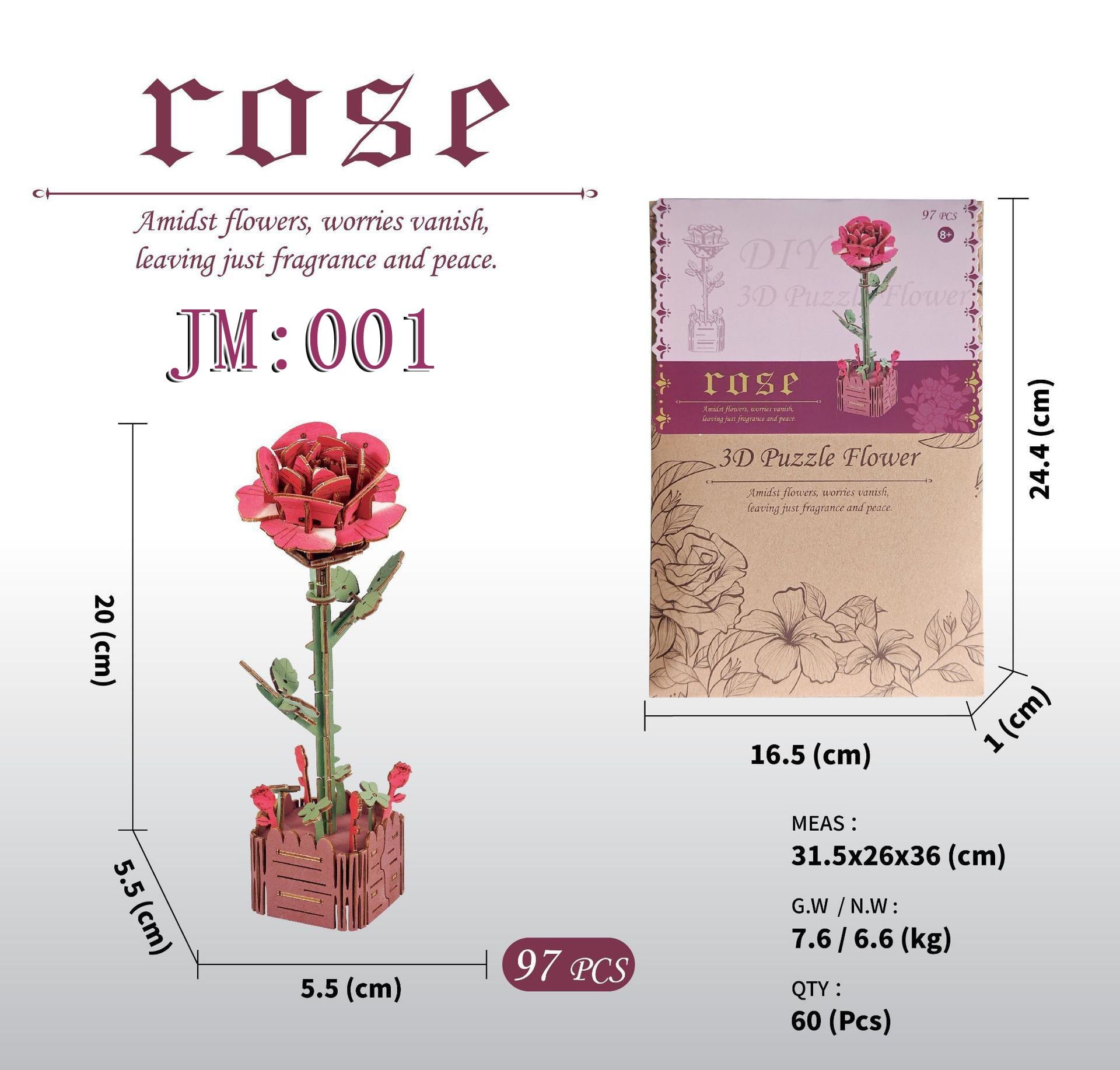 Kích thước thành phẩm: 20 x 5 x 5cm
