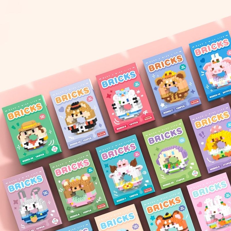 Bộ đồ chơi lắp ráp các nhân vật hoạt hình dáng donut đáng yêu, nhỏ gọn
