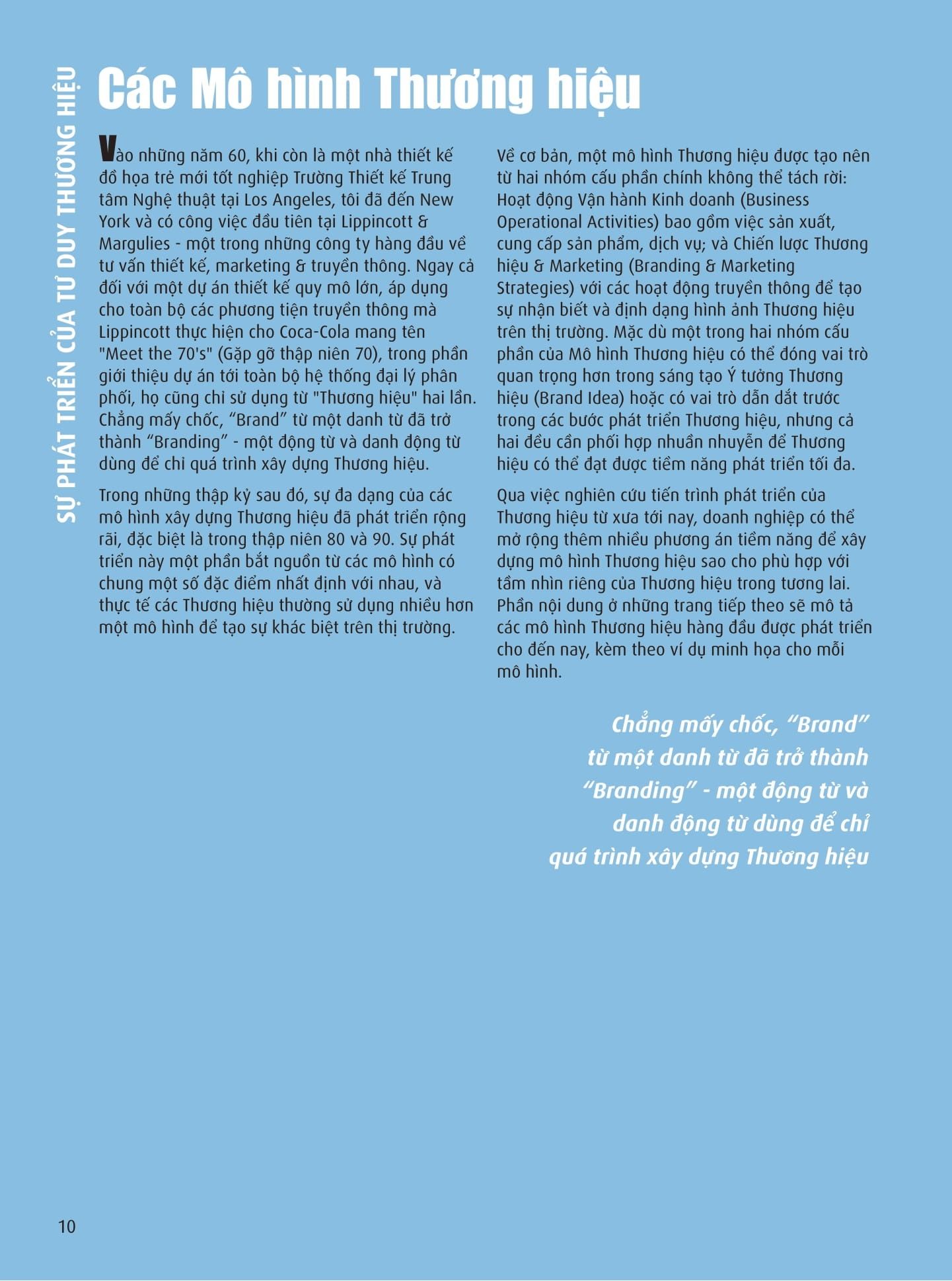 Cuốn sách không chỉ mang đến góc nhìn mới mẻ về bản chất của thương hiệu mà còn là kho tàng kiến thức phong phú về các mô hình thương hiệu nổi tiếng trong suốt 70 năm qua. Đặc biệt, tác giả Richard Moore đã trình bày một cách đầy đủ và chi tiết các nguyên tắc cốt lõi của IBT và minh họa bằng nhiều ví dụ thực tiễn, sáng tạo.