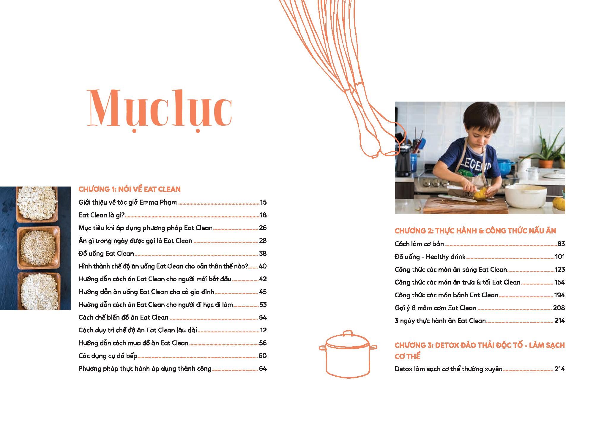 Tiếp nối thành công của cuốn sách đầu tay Green Smoothies – cuốn sách từng đứng đầu các bảng xếp hạng sách bán chạy, top 1 sách làm đẹp được yêu thích nhất và được tái bản chỉ sau 1 tuần phát hành, cuốn sách tiếp theo của tác giả Emma Phạm sẽ mang đến cho độc giả những hướng dẫn thiết lập chế độ ăn Eat Clean – Ăn sạch sống khỏe cho người mới bắt đầu.