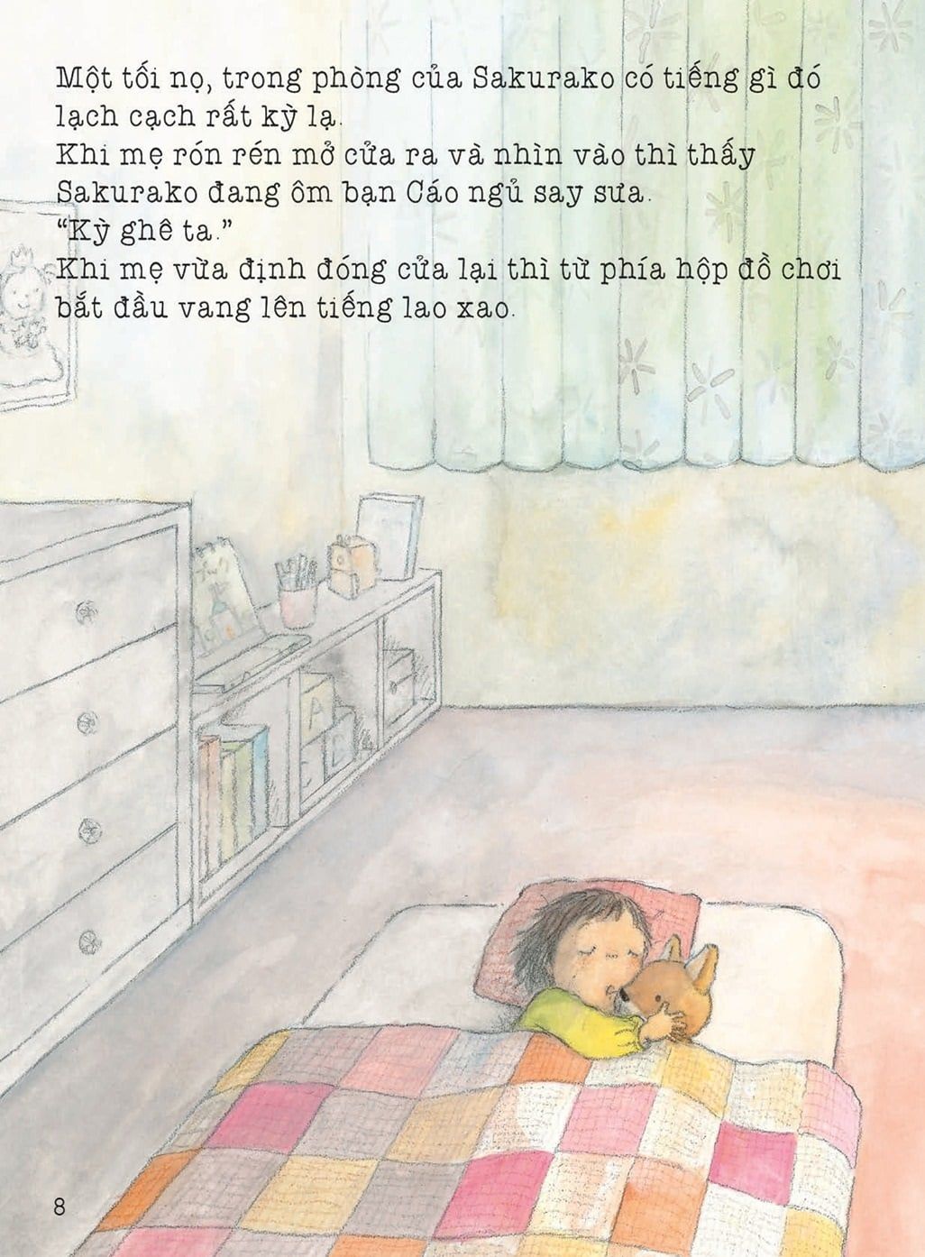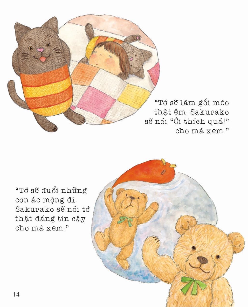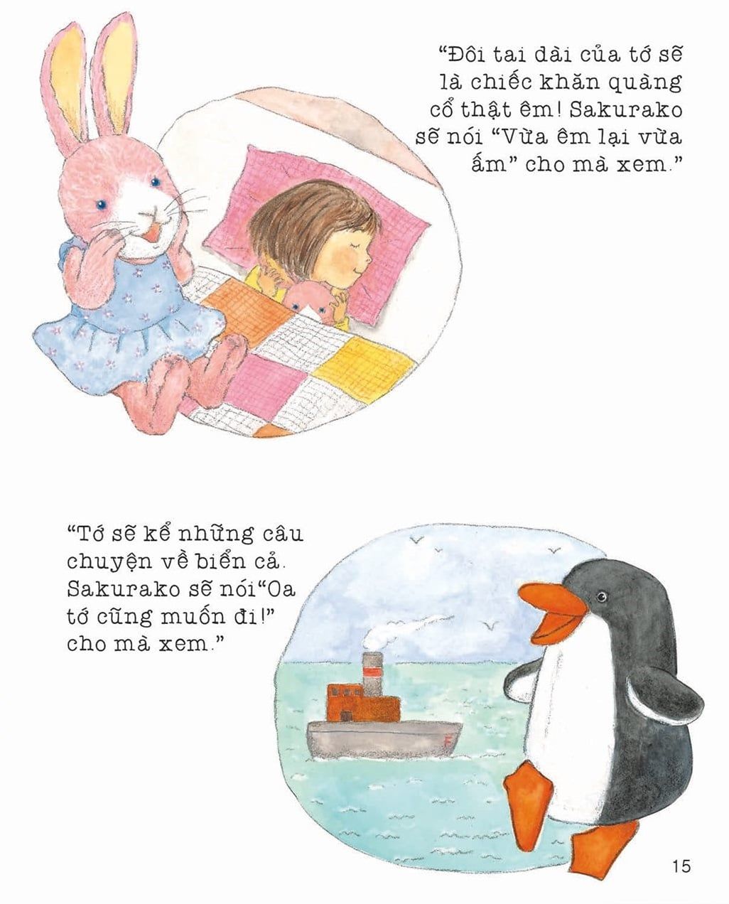 “Cô bé Sakurako đã lớn hơn trước rất nhiều. Bây giờ bé đã có thể tự thay quần áo được rồi đấy, tuy hơi mất thời gian một chút thôi. Bé rất tự lập. Một ngày nọ bé nói với mẹ: “Con sẽ tự ngủ một mình”. Mẹ lo lắng hỏi: “Con có chắc không?” Sakurako gật đầu đầy quả quyết…”
