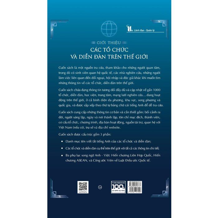 Cuốn sách chứa đựng thông tin cơ bản, cần thiết và tương đối đầy đủ về gần 1.000 tổ chức, diễn đàn, học viện, trung tâm, mạng lưới nghiên cứu… đang hoạt động trên thế giới, ở cả bình diện đa phương, khu vực, song phương và quốc gia, được sắp xếp theo thứ tự bảng chữ cái tiếng Anh, để dễ tra cứu., gồm: bối cảnh ra đời, người sáng lập, ngày và nơi thành lập, tôn chỉ mục đích, thành viên, cơ cấu tố chức, chương trình, địa bàn hoạt động, nguồn tài trợ, quan hệ với Việt Nam (nếu có), trụ sở và địa chỉ website.