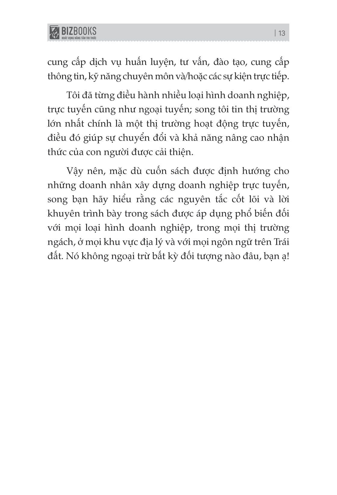 Cuốn sách là kết tinh sau quá trình dài tạo dựng hàng chục doanh nghiệp triệu đô của tác giả. Hy vọng đây sẽ là tấm bản đồ giúp doanh nghiệp của bạn từng bước phát triển lâu dài và bền vững.