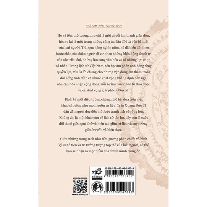 Trong lịch sử Việt Nam, tên họ vừa phản ánh dòng chảy quyền lực, vừa là ấn chứng cho những vận động âm thầm trong đời sống tinh thần cá nhân: khát vọng khẳng định bản ngã, nhu cầu hòa nhập cộng đồng, nỗi sợ hãi trước bão tố thời cuộc, và cả khát vọng giải phóng tâm trí. Khởi từ một điều tưởng chừng nhỏ bé, dựa trên việc khảo sát công phu mọi nguồn tư liệu, tác giả Trần Quang Đức đã dẫn dắt người đọc đến một bức tranh lịch sử rộng lớn.