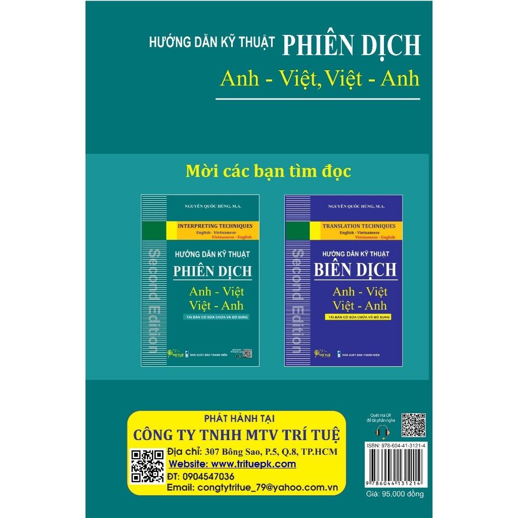 Sách Hướng dẫn kỹ thuật phiên dịch Anh - Việt Việt -Anh của tác Nguyễn Quốc Hùng hướng dẫn cho bạn đọc các phương pháp, kỹ năng, kỹ thuật để phiên dịch tiếng Anh theo các tình huống, ngữ cảnh khác nhau.