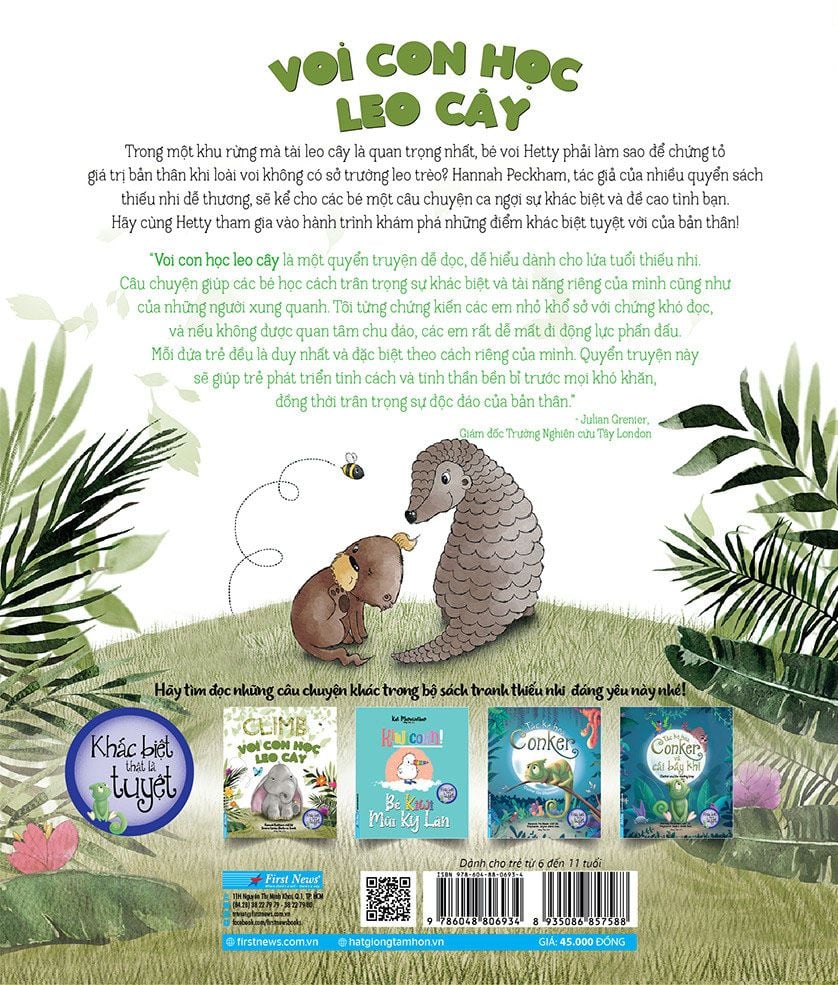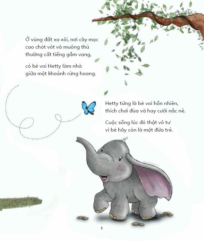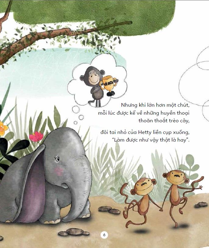 Bé sẽ được lắng nghe câu chuyện của Hetty hồn nhiên, tốt bụng qua câu chuyện “Voi con học leo cây”. Voi con Hetty từng tự ti vì mình không thể leo cây nhưng rồi bé nhận ra “Giá trị của voi không nhất thiết phải được đánh giá qua tài leo cây!” mà còn qua nhiều tài năng đặc biệt khác.