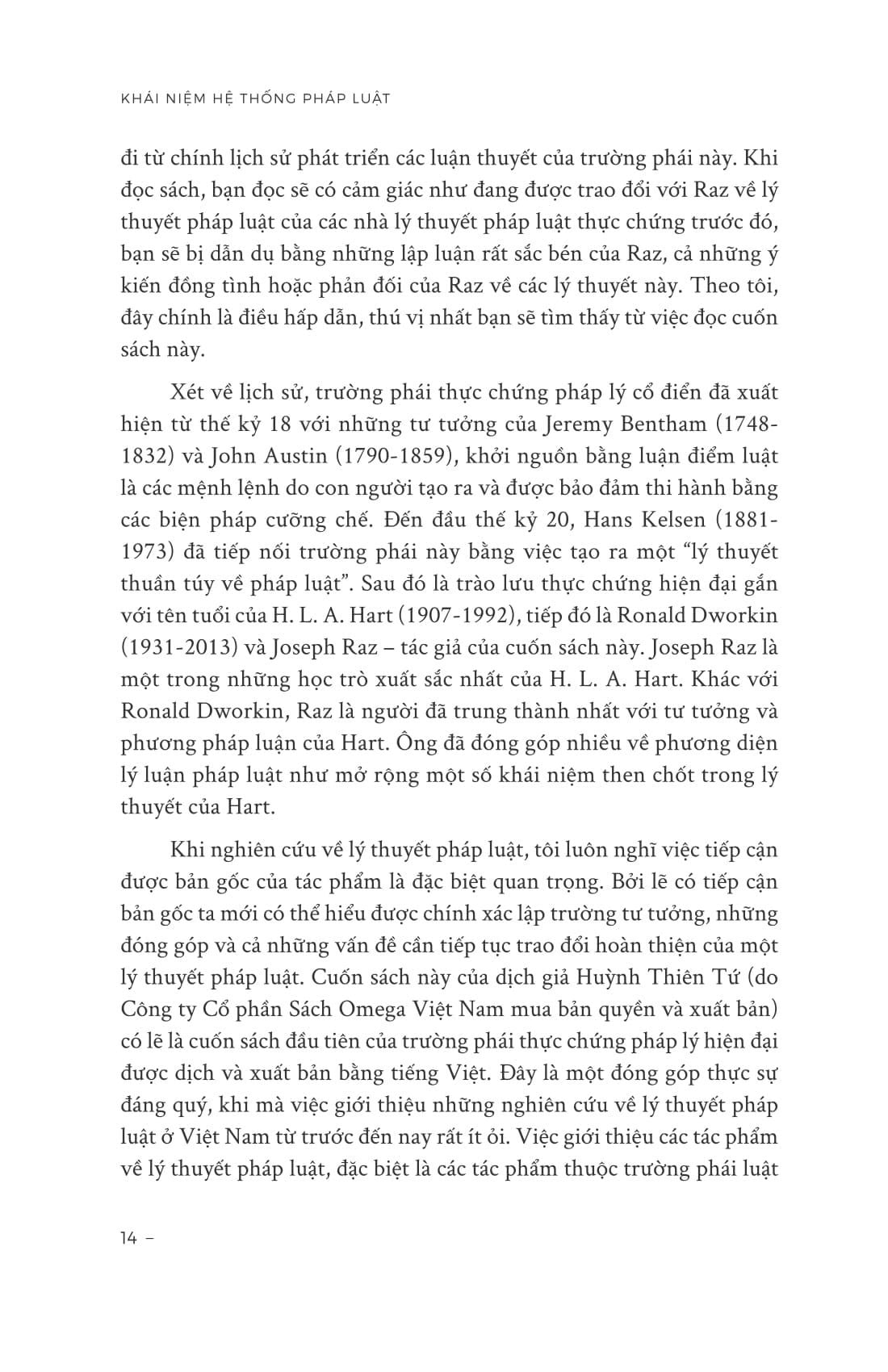 Vì lý do trên, cuốn sách này hoàn toàn có thể được đọc như một bước dẫn nhập vào thế giới lý thuyết của luật thực chứng. Điều này đặc biệt rất hữu ích đối với bạn đọc Việt ngữ, vì phần lớn các tác phẩm pháp lý học được ấn hành tại Việt Nam đến nay đều xoay quanh học phái luật tự nhiên hoặc trường phái xã hội học phê phán về luật.”