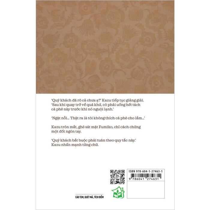 Trong một con hẻm nhỏ giữa lòng Tokyo náo nhiệt, có một tiệm cà phê đã âm thầm tồn tại hơn một trăm năm. Nơi đây không chỉ nổi tiếng với những ly cà phê được pha chế tỉ mỉ, mà còn bởi một trải nghiệm kỳ lạ: cho phép khách hàng quay về quá khứ. "Khi tách cà phê còn chưa nguội" sẽ đưa người đọc bước vào cuộc gặp gỡ với bốn vị khách - những người mang trong lòng một nỗi niềm chưa kịp thổ lộ. Họ tìm đến quán với mong mỏi được quay lại quá khứ để: đối mặt với người đàn ông đã rời xa mình; nhận lấy lá thư từ người chồng mắc chứng Alzheimer; gặp lại người em gái quá cố lần cuối; và làm quen với đứa con mà mình chưa từng biết mặt. Nhưng hành trình trở về quá khứ vốn không hề dễ dàng. Để đạt được mục đích ấy, các vị khách phải tuân theo không ít các quy tắc ngặt nghèo - và trên hết, họ phải quay về hiện tại trước khi tách cà phê trước mặt kịp nguội lạnh. Những câu chuyện cảm động và sâu lắng của Toshikazu Kawaguchi sẽ từng bước nhen nhóm trong lòng mỗi người một câu hỏi muôn thuở: Nếu được quay về quá khứ, bạn sẽ thay đổi điều gì? Và bạn sẽ muốn gặp ai, nếu đó là lần cuối cùng? Bởi chỉ khi đồng xu số phận được tung lên, bạn mới nhận ra đâu là điều quan trọng nhất với mình.