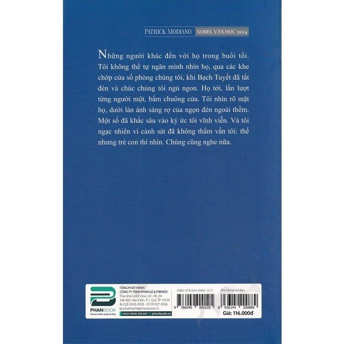 Patrick Modiano là Nhà văn Pháp với hơn 30 tác phẩm bao gồm tiểu thuyết, kịch bản phim,... các tác phẩm của ông đã được dịch 36 thứ tiếng trên thế giới, đạt nhiều giải thưởng danh tiếng, phải kể đến giải Nobel Văn học năm 2014