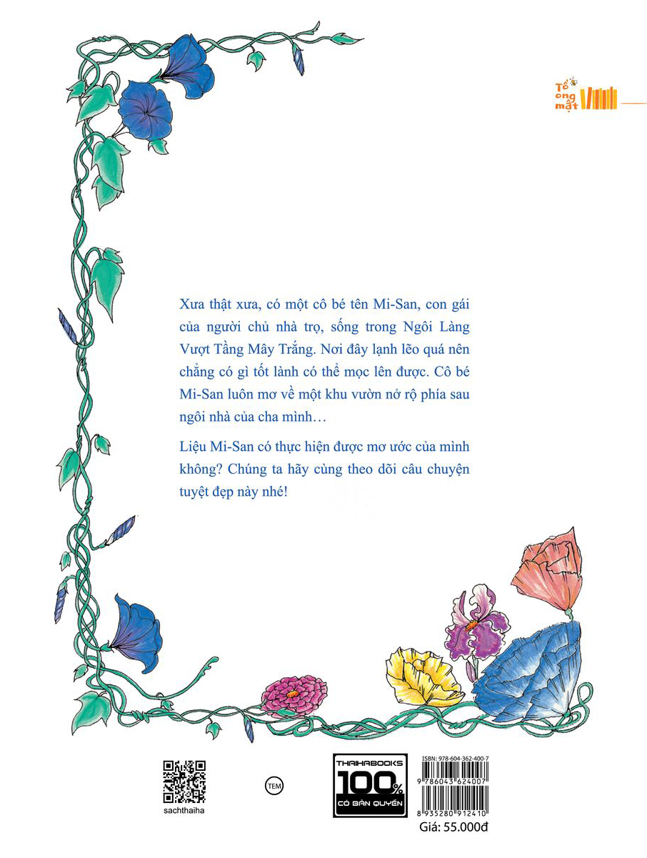 “Khu vườn của Mi-San” Là cuốn sách có tranh màu minh hoạ. Kể về một cô bé tên là Mi-San, con gái của người chủ nhà trọ, sống trong Ngôi Làng Vượt Tầng Mây Trắng.