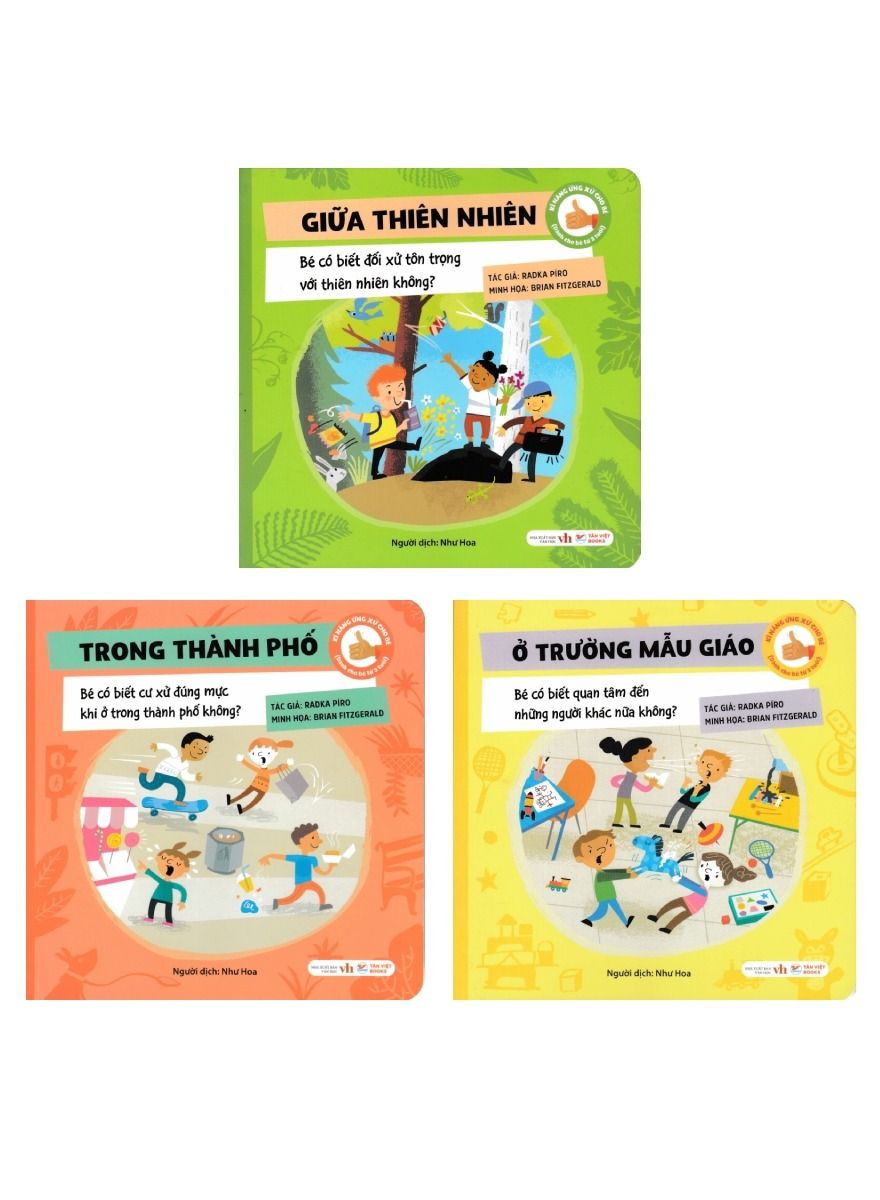Đừng lo nhé! Bộ sách Kĩ năng ứng xử cho bé sẽ hướng dẫn cho bé cách cư xử khi vui chơi ngoài tự nhiên, khi ở trong thành phố hay khi ở trường mẫu giáo.