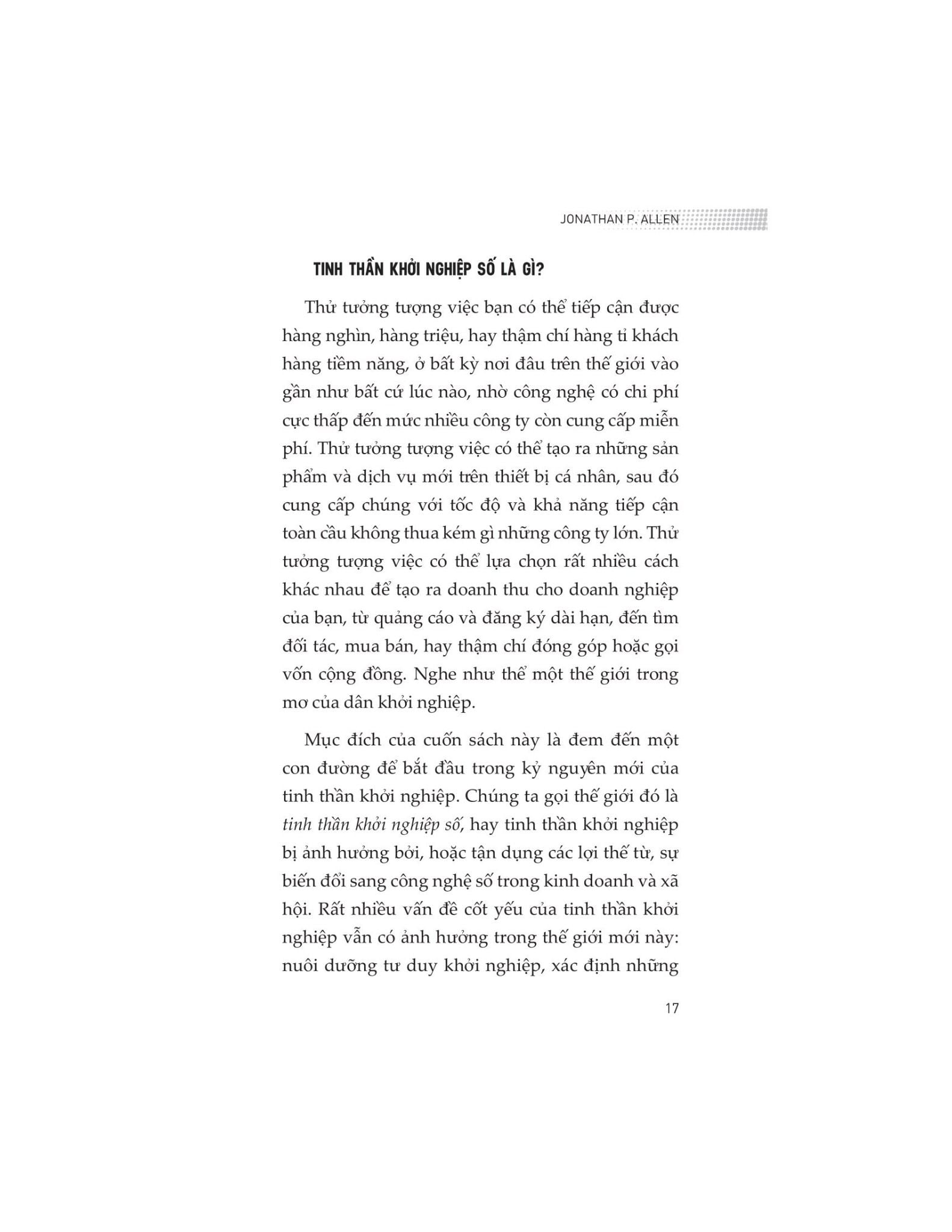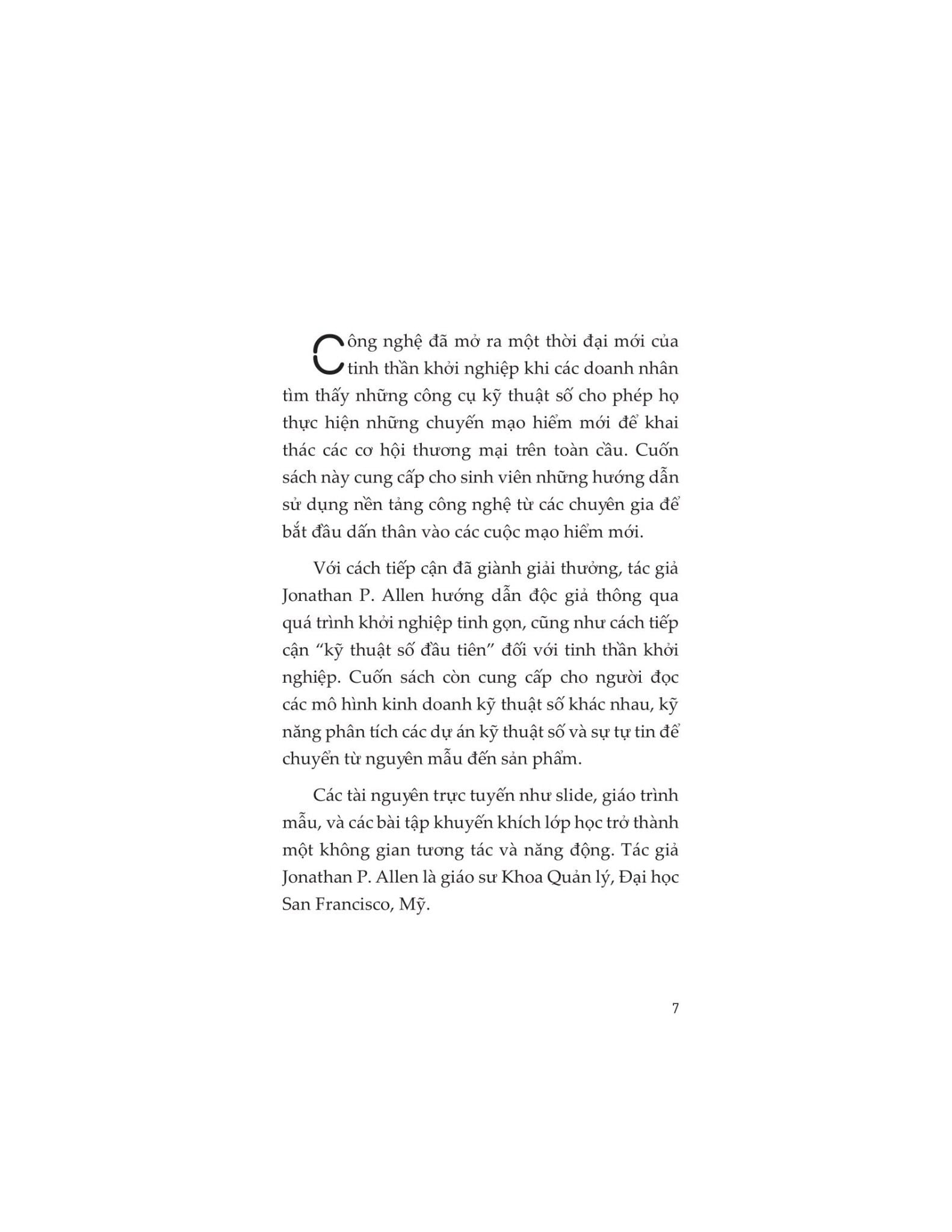 Với cách tiếp cận đã giành giải thưởng, tác giả Jonathan P. Allen hướng dẫn độc giả thông qua quá trình khởi nghiệp tinh gọn, cũng như cách tiếp cận “kỹ thuật số đầu tiên” đối với tinh thần khởi nghiệp. Kinh doanh trong thời đại VUCA còn cung cấp cho người đọc các mô hình kinh doanh kỹ thuật số khác nhau, kỹ năng phân tích các dự án kỹ thuật số và sự tự tin để chuyển từ nguyên mẫu đến sản phẩm.