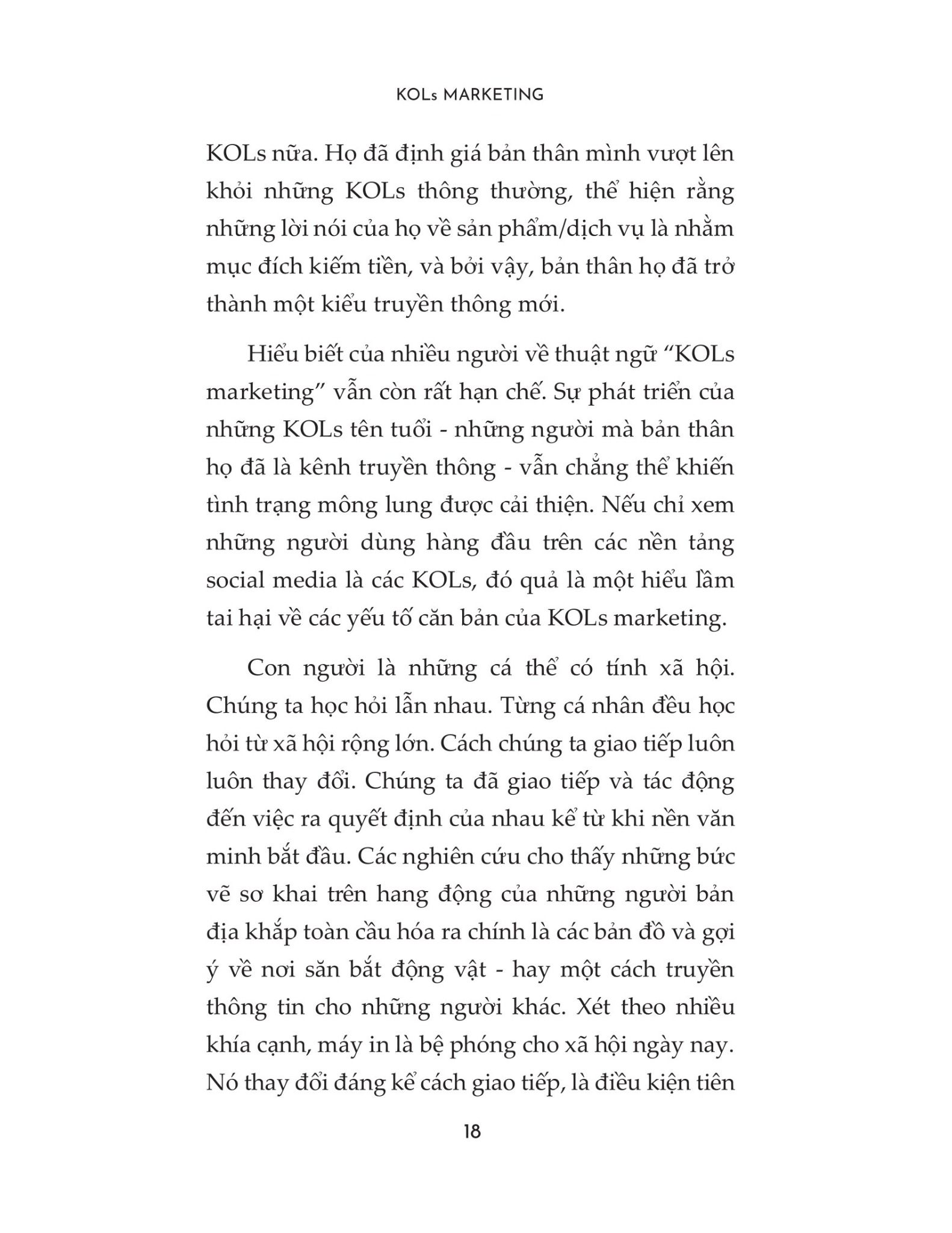 Cuốn sách KOLs Marketing là hướng dẫn thiết yếu dành cho các chuyên gia tiếp thị và chủ doanh nghiệp để thiết lập và thực hiện một kế hoạch quảng bá dài hạn vừa hiệu quả vừa bền vững, với trọng tâm là tận dụng những người có tiếng nói trên các kênh truyền thông xã hội như Facebook, Instagram, Twitter...