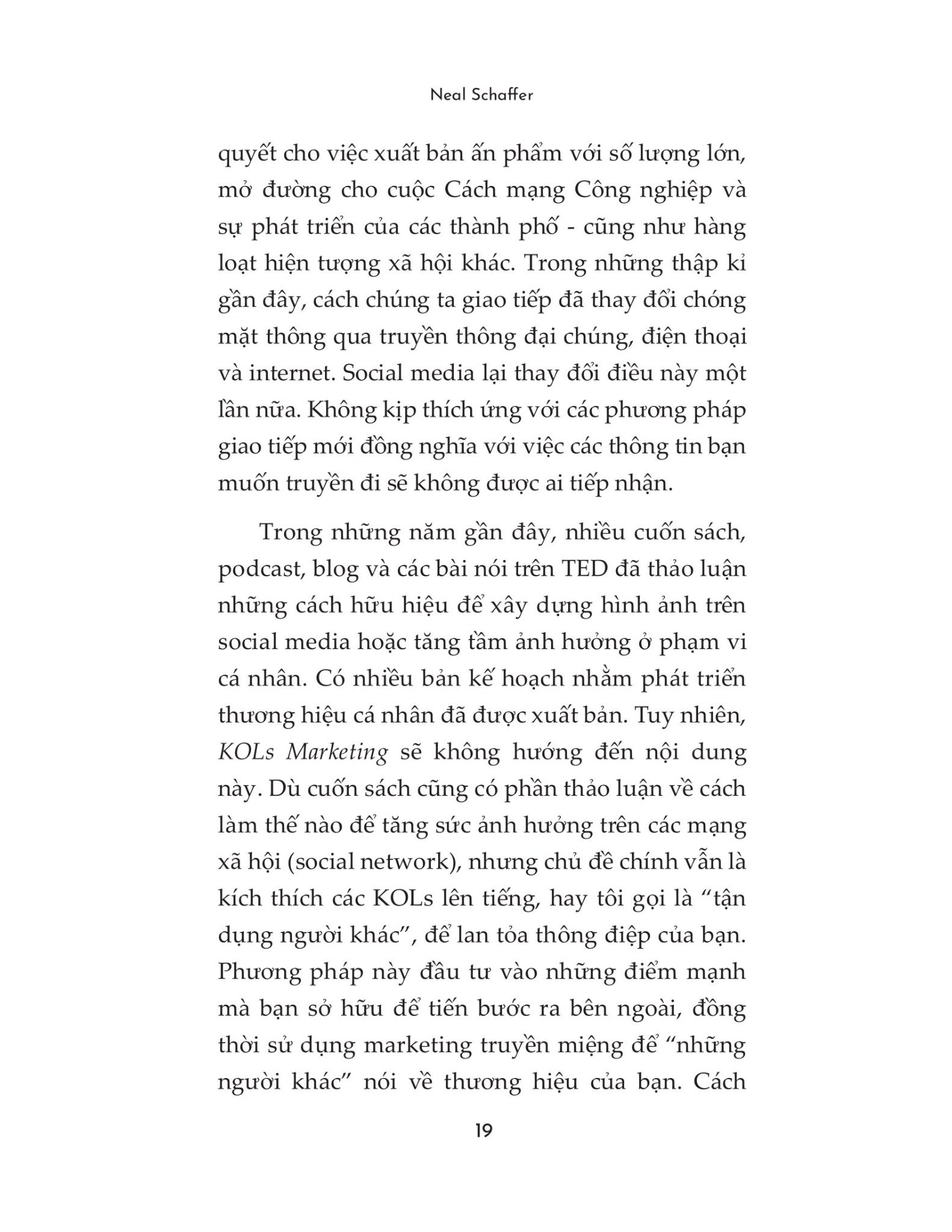 Trong cuốn sách, tác giả Neal Schaffer - chuyên gia về tiếp thị trên social media, sẽ giải thích chi tiết sự chuyển dịch về truyền thông đóng vai trò quan trọng như thế nào đối với tiếp thị trực tuyến trong một kỉ nguyên mà các KOL lên ngôi.