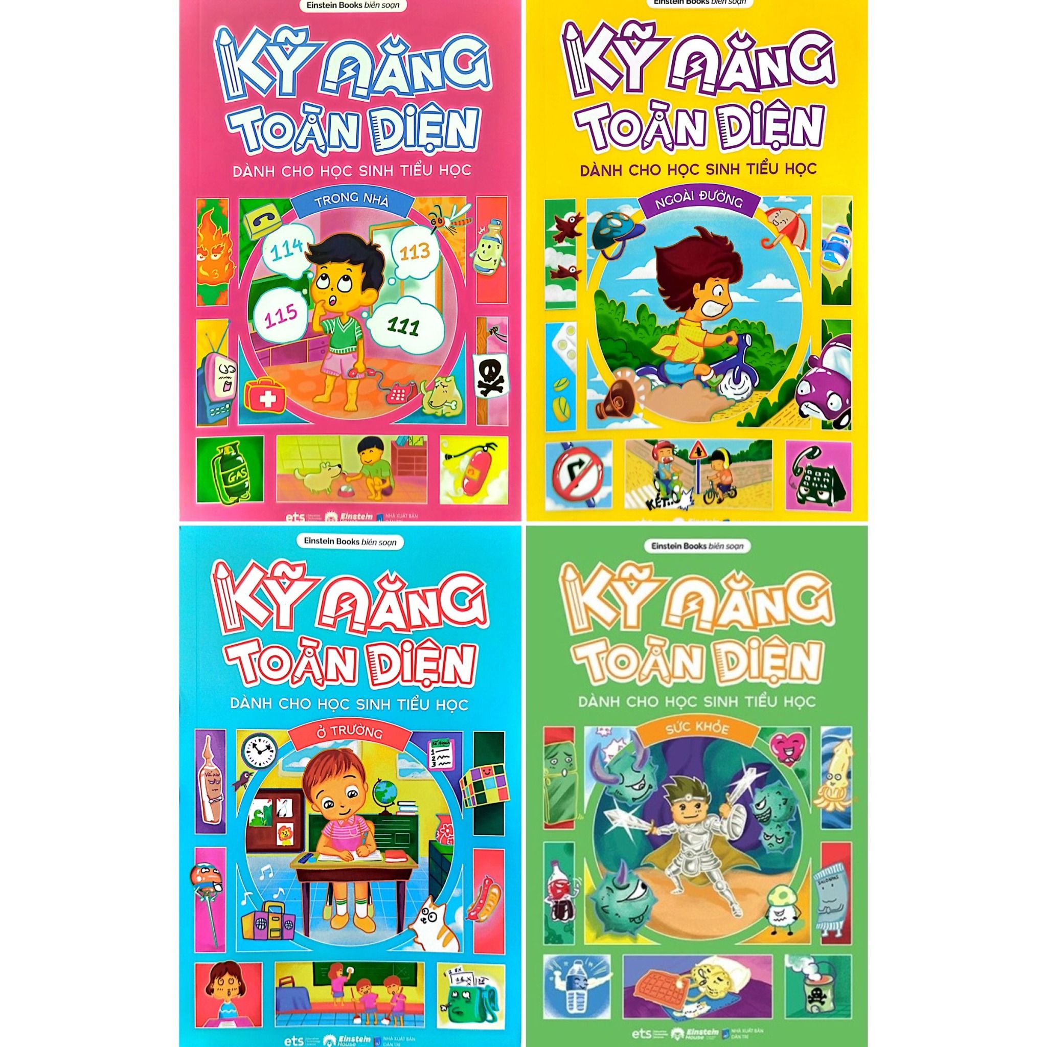 Với mục tiêu trang bị cho các em học sinh những kiến thức cần thiết về các kỹ năng, Einstein Books đã biên soạn ra bộ sách Kỹ năng Toàn diện dành cho Học sinh Tiểu học. Bộ sách gồm 04 cuốn: Sức khỏe, Trong nhà, Ở trường và Ngoài đường. Mỗi cuốn sẽ trình bày những kỹ năng cần thiết cho các em trong các hoàn cảnh ứng với tên chủ đề của chúng.