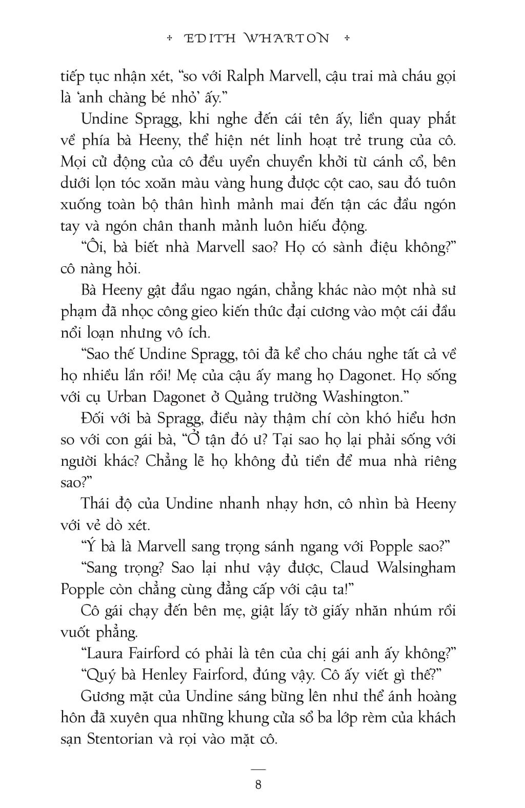 Mang theo giấc mơ biến con gái trở thành tâm điểm của giới thượng lưu, gia đình Spragg đã không ngần ngại dốc cạn tài sản để đưa Undine đến New York. Ngặt nỗi, khi bị kẹt trong một khách sạn xa hoa mà họ khó lòng thanh toán nổi, giấc mơ ấy có nguy cơ tan vỡ. Tuy nhiên, với niềm tôn thờ vật chất, khao khát cuộc sống phồn hoa đẳng cấp, Undine quyết tâm bám trụ và chinh phục đỉnh cao danh vọng bằng tất cả sức quyến rũ cùng mánh khóe của mình.