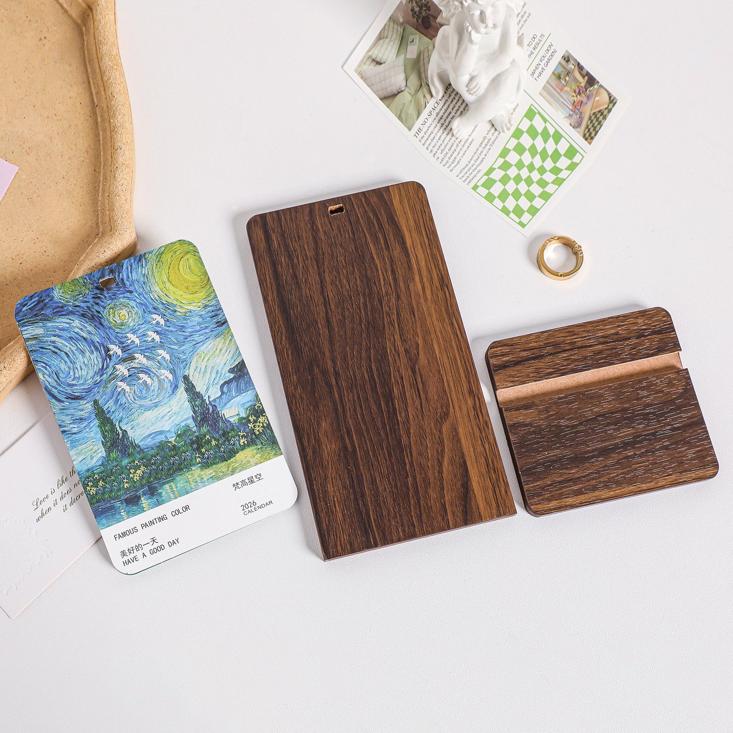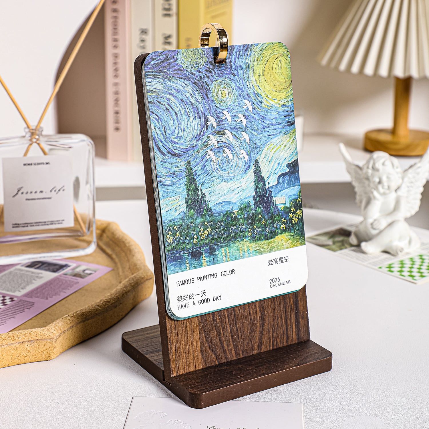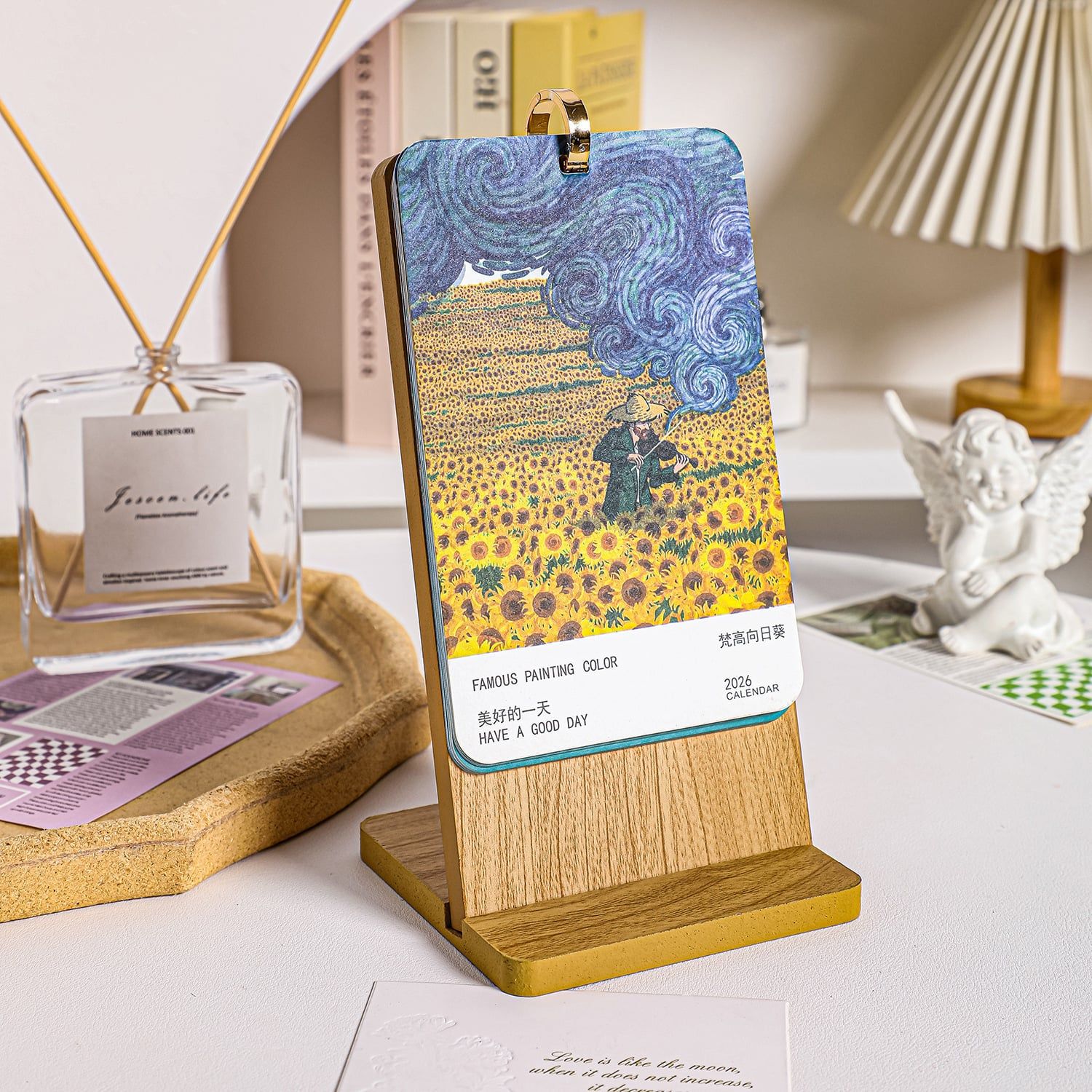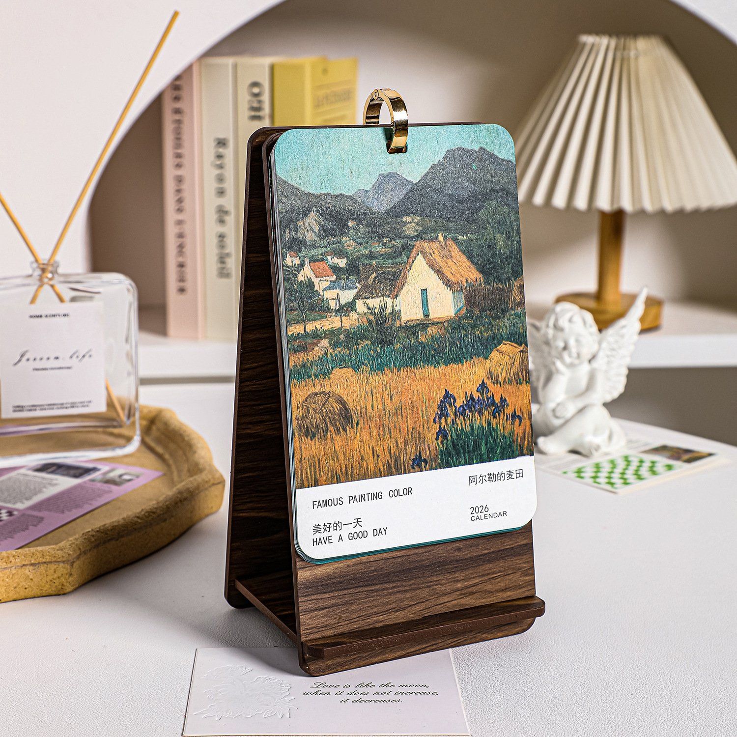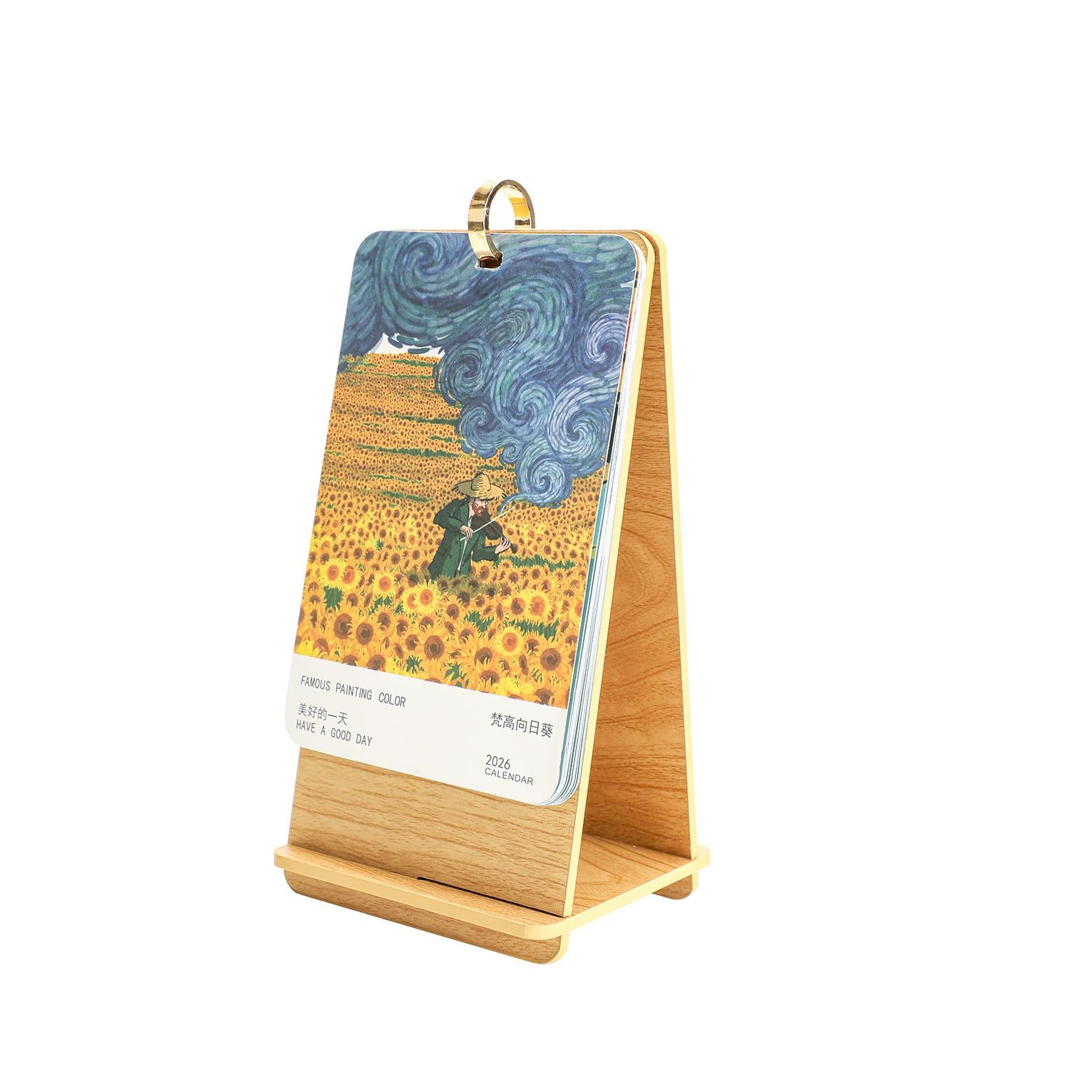 Lịch để bàn gỗ, in hình danh họa