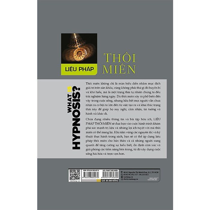 Chứa đựng nhiều thông tin và bài tập hữu ích, LIỆU PHÁP THÔI MIÊN sẽ đưa bạn vào cuộc hành trình khám phá sức mạnh trị liệu và những lợi ích tuyệt vời mà thôi miên có thể mang lại. Khi nắm vững các nguyên tắc và kỹ thuật thực hành trong sách, bạn sẽ có thể áp dụng liệu pháp thôi miên cho bản thân và cả những người xung quanh để tăng cường sự hiểu biết, ổn định cảm xúc và giải phóng các tiềm năng bên trong, từ đó xây dựng cuộc sống hài hòa và trọn vẹn hơn.
