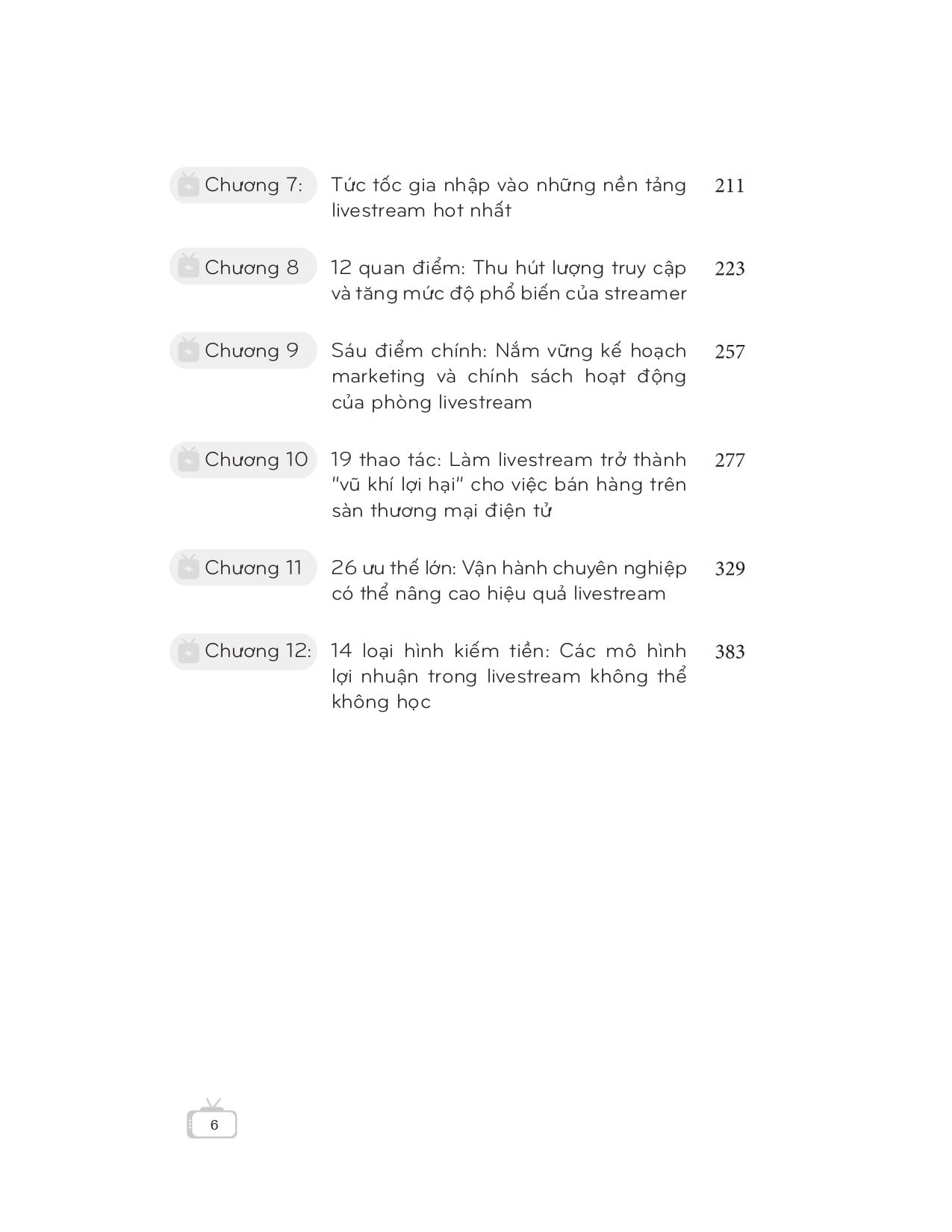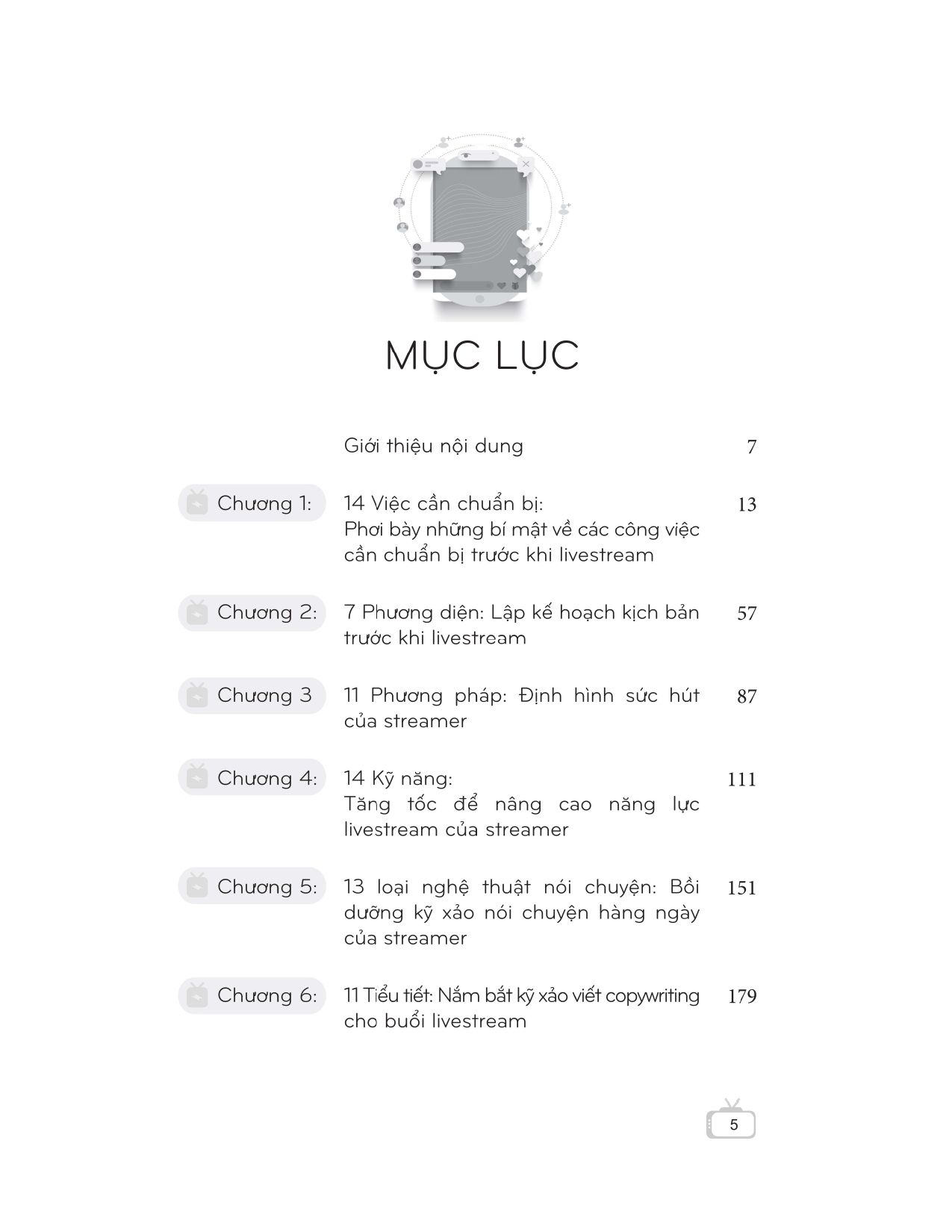 “Livestream – Hướng dẫn chi tiết cách kiếm tiền từ livestream” bao gồm các nội dung về các bước chuẩn bị cho một buổi livestream, nội dung livestream, bồi dưỡng kỹ năng, kịch bản livestream, content cho buổi livestream, nền tảng phát sóng, thu hút lượt truy cập, chính sách hoạt động, livestream bán hàng, vận hành livestream, tăng tỷ lệ chuyển hóa bán hàng… nhằm giúp những streamer mới có thể nắm được các kiến thức cần thiết về livestream trong thời gian ngắn nhất để trở thành một streamer thành công.